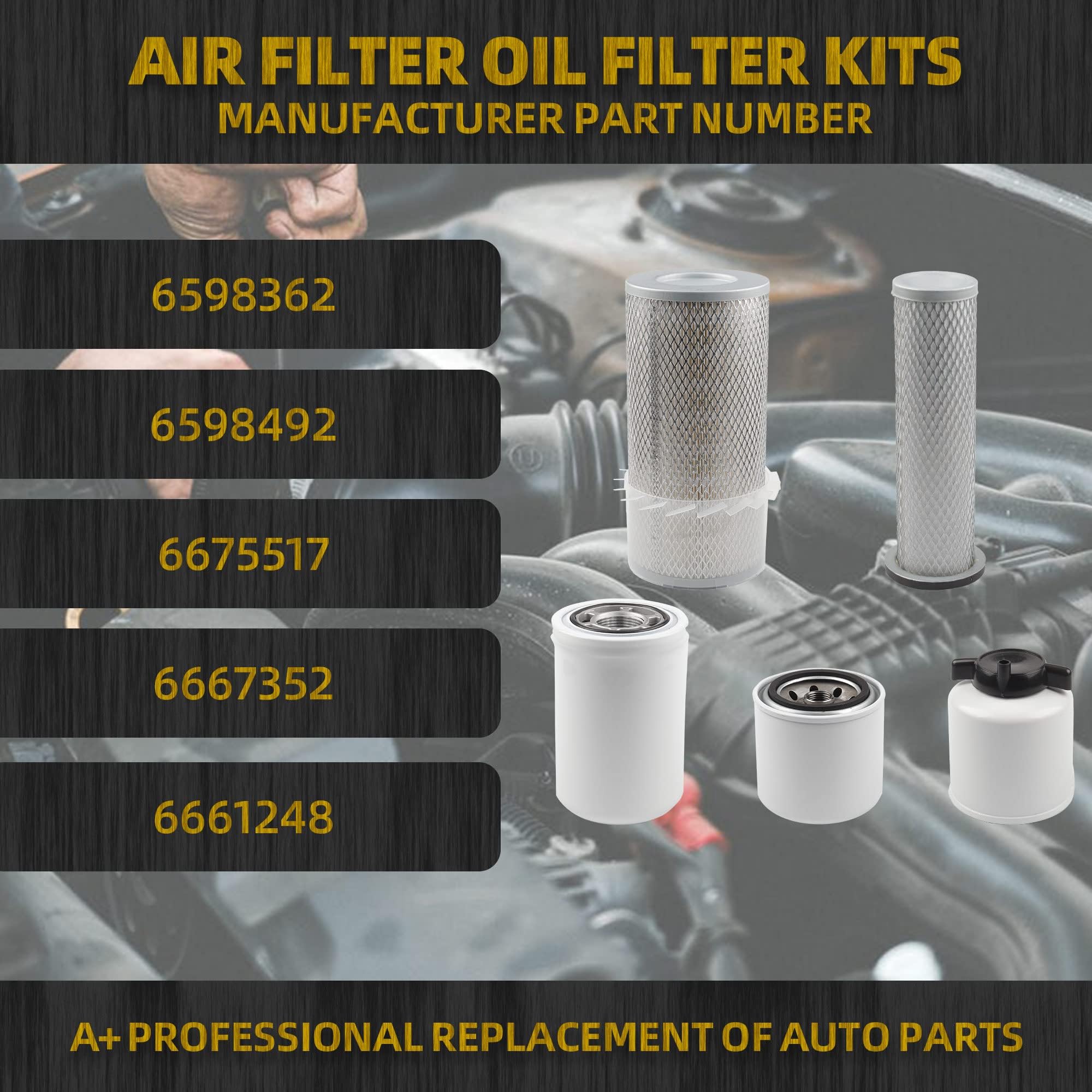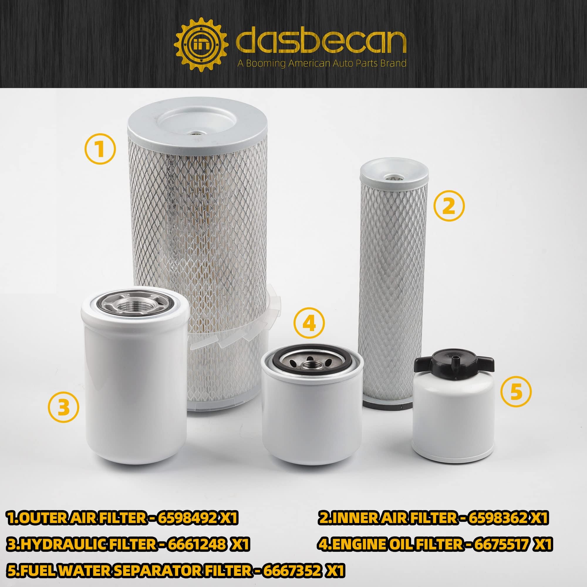 【Package list】Inner Air Filter - 6598362 x1pc, Outer Air Filter - 6598492 x1pc, Fuel Water Separator Filter - 6667352 x1pc, Engine Oil Filter - 6675517 x1pc, Hydraulic Filter - 6661248 x1pc.