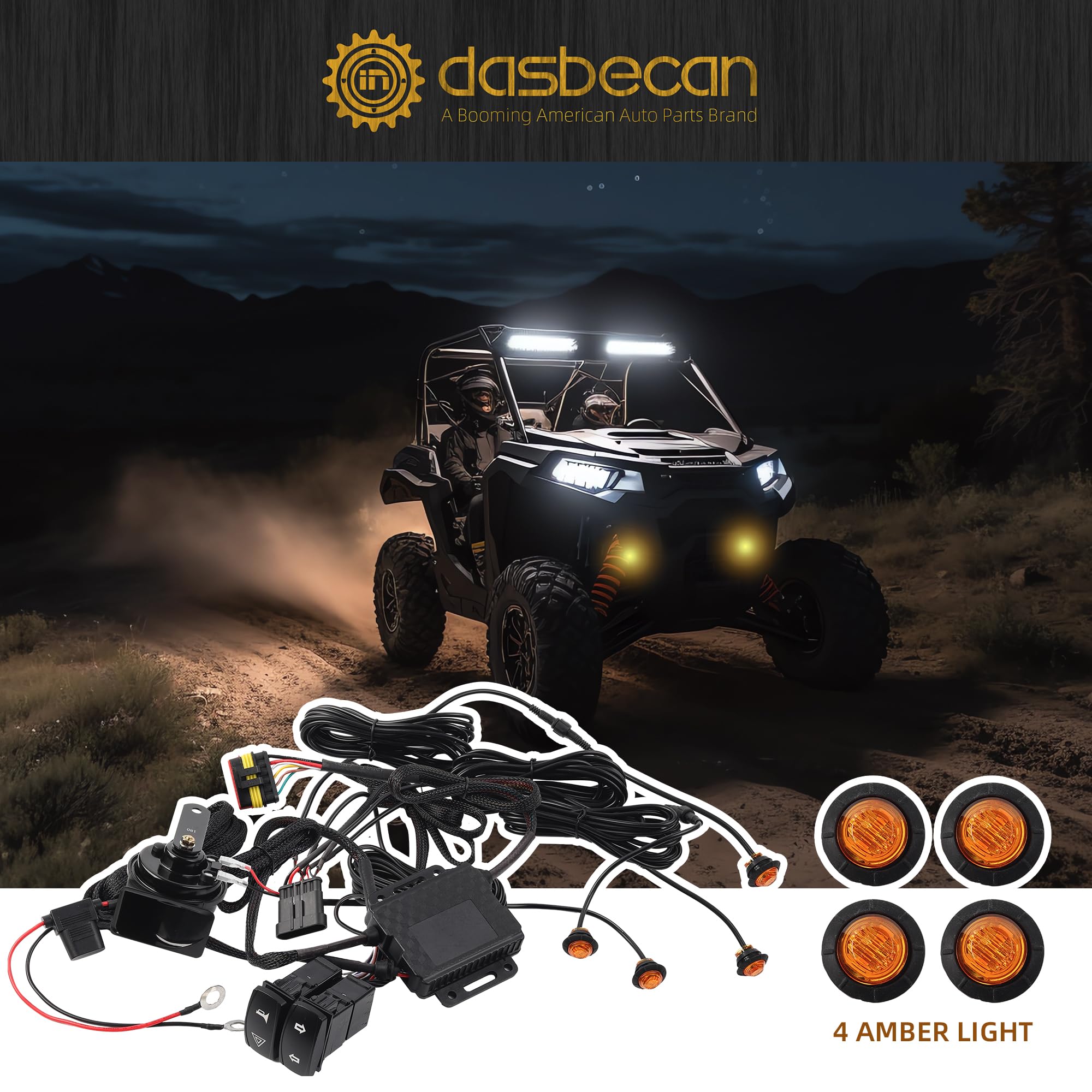 Packing includes: UTV turn signal kit with horn & 4 PCS amber turn signal lights, including all wiring and connectors. If you need to replace other lamp types, please choose a voltage stable lamp to ensure that the voltage of the lamp is 12V.