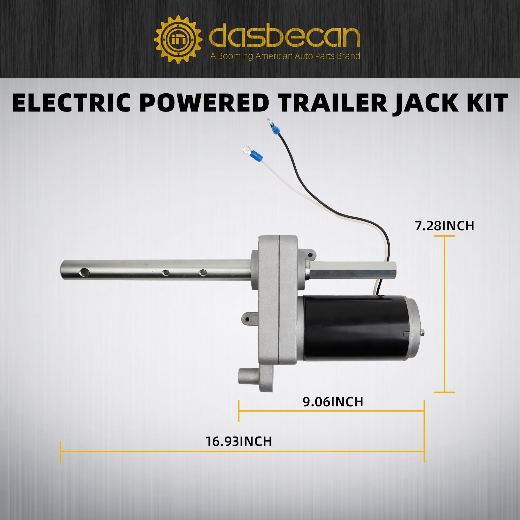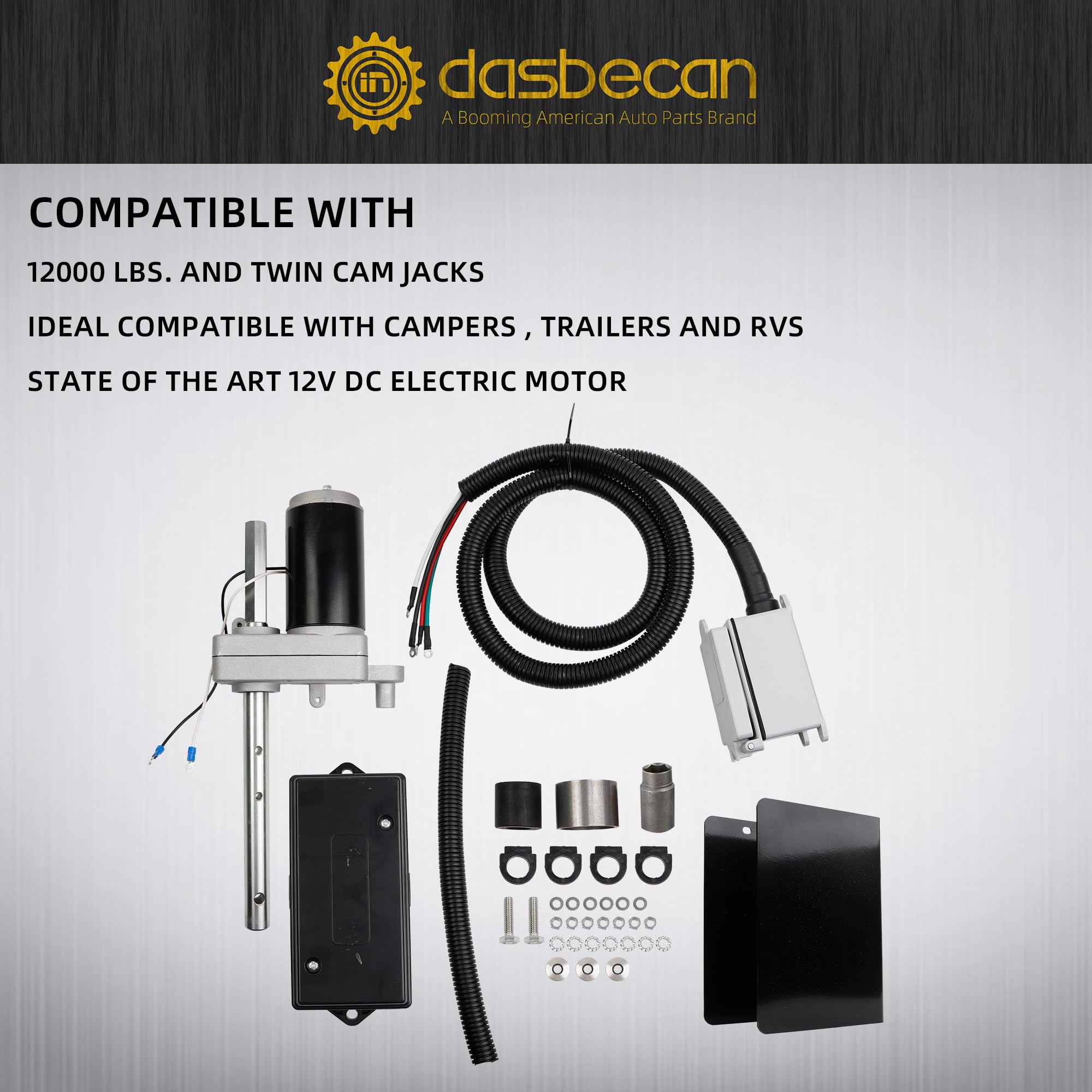 【Feature】 The electric powered trailer jack kit lifts up to 12,000 lbs, ensuring stability and ease during hitching and leveling.Crafted from high-strength steel and finished with a quality powder coating Sturdy and Weather-Resistant. State of the art 12VDC electric motor for easy automatic lifting and lowering,can be manually started in the event of a power outage.