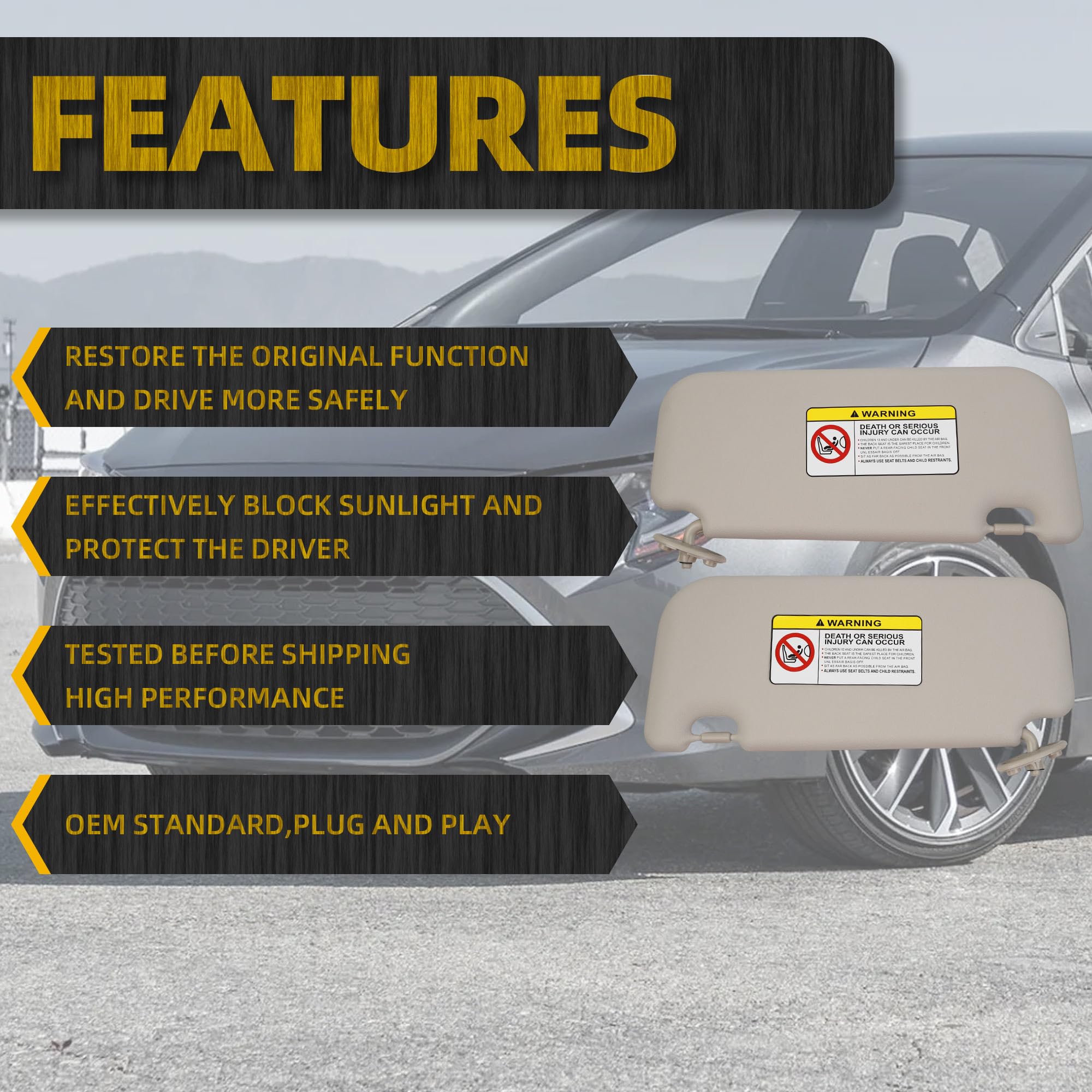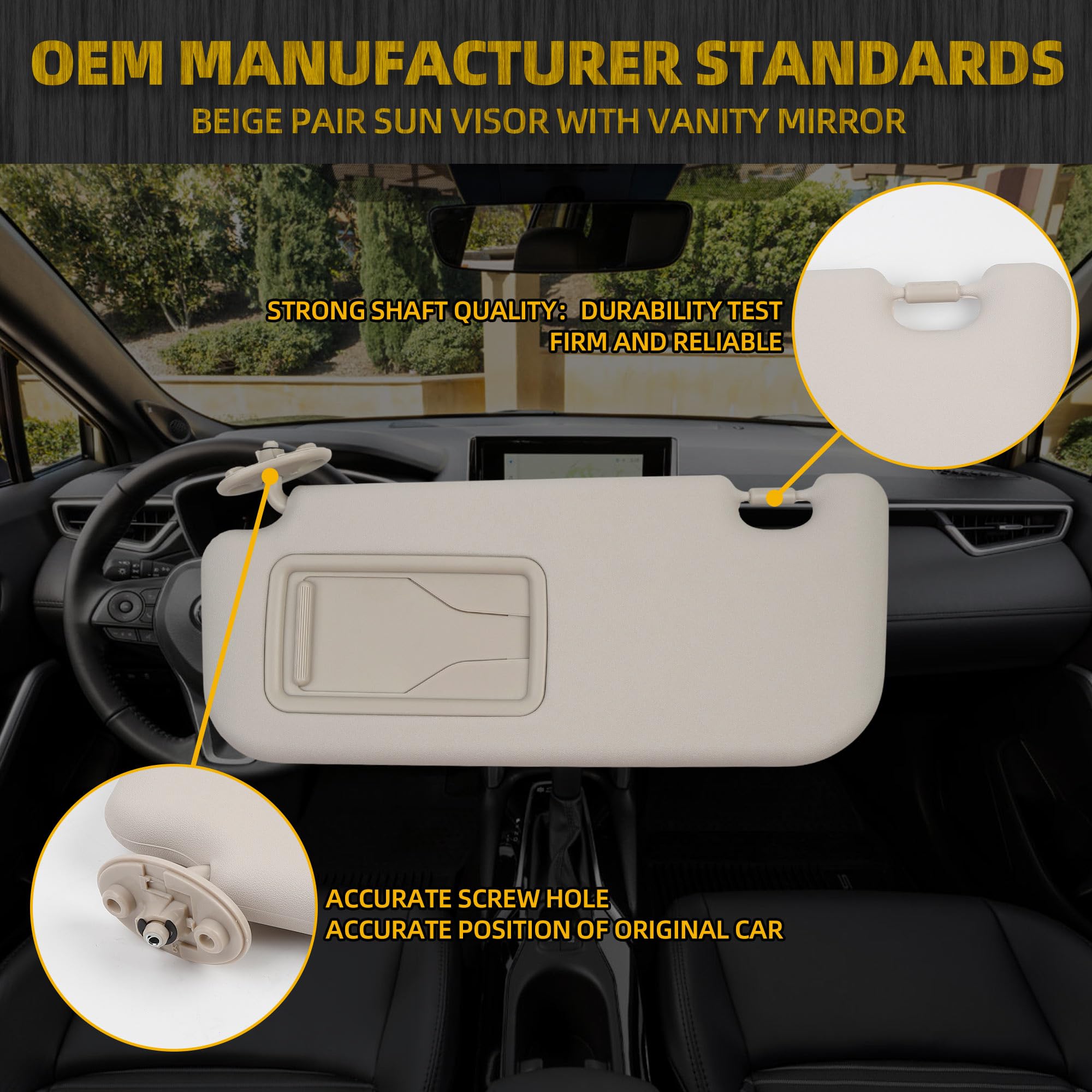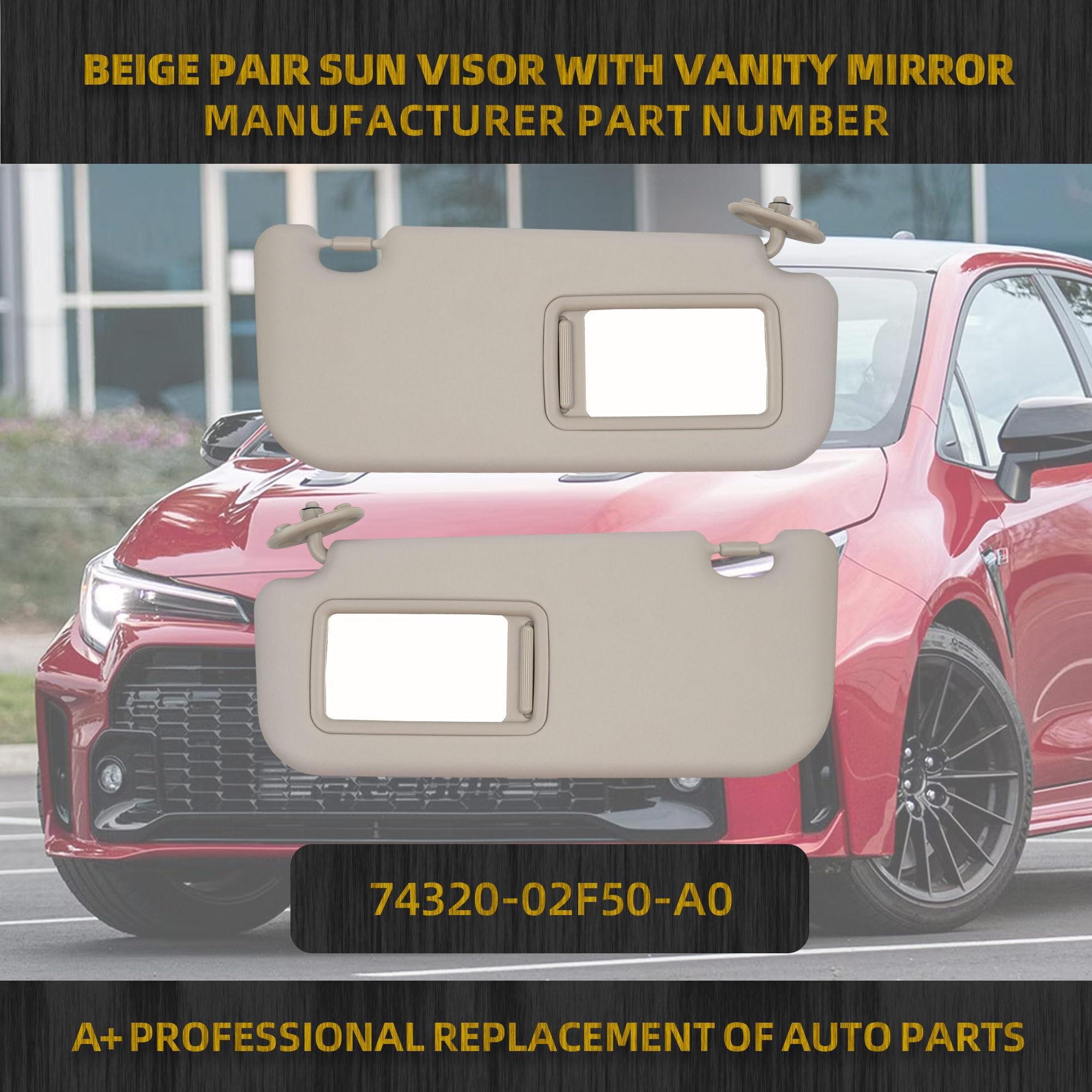 【Description】Beige Pair Sun Visor with Vanity Mirror (Left Driver Side & Right Passager side)