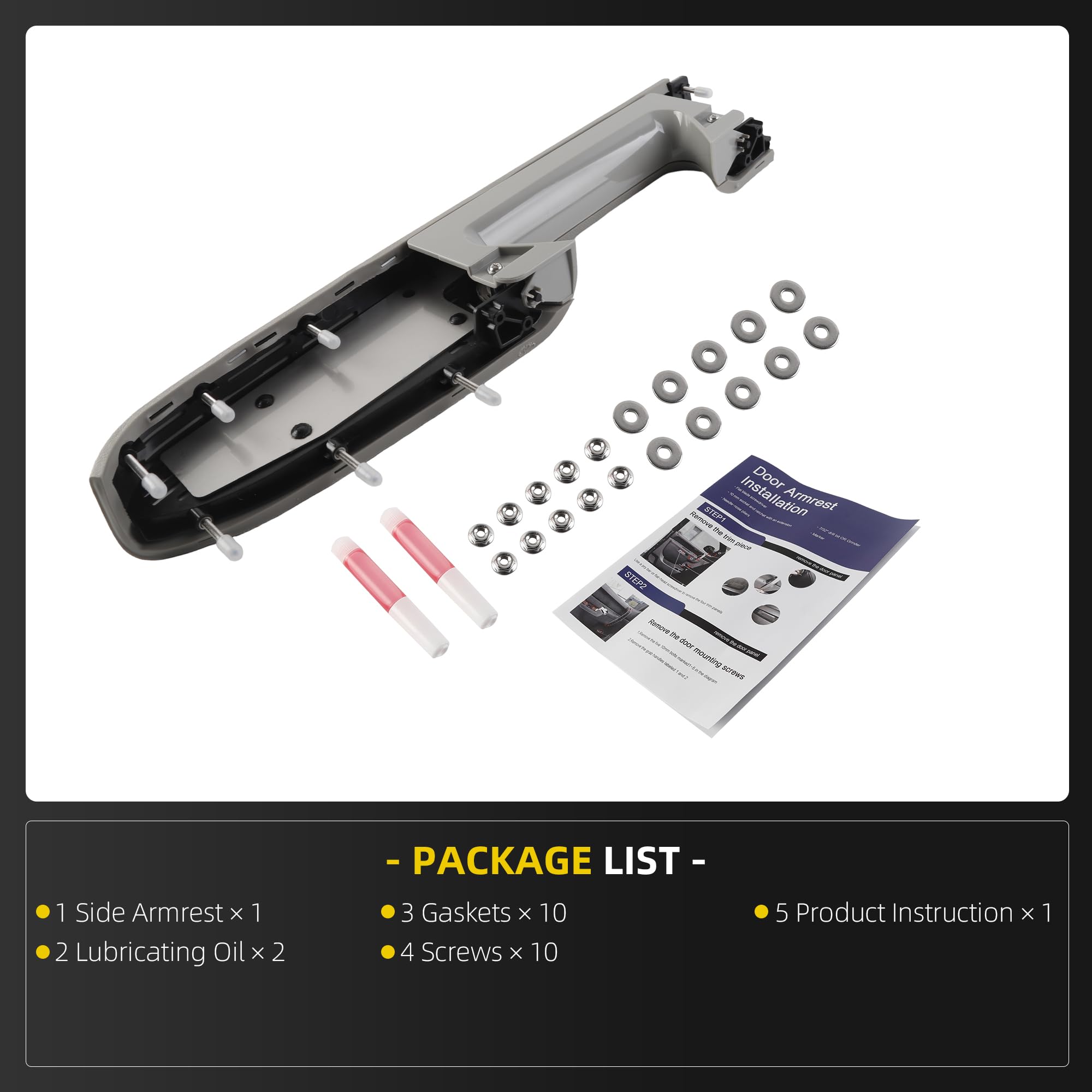 【Product Introduction】Gray Armrest Repair Kit Left Driver Side with parts, item weight of 0.694 kg.Packaging Specifications: 49.30 × 13.40 × 6.20 cm