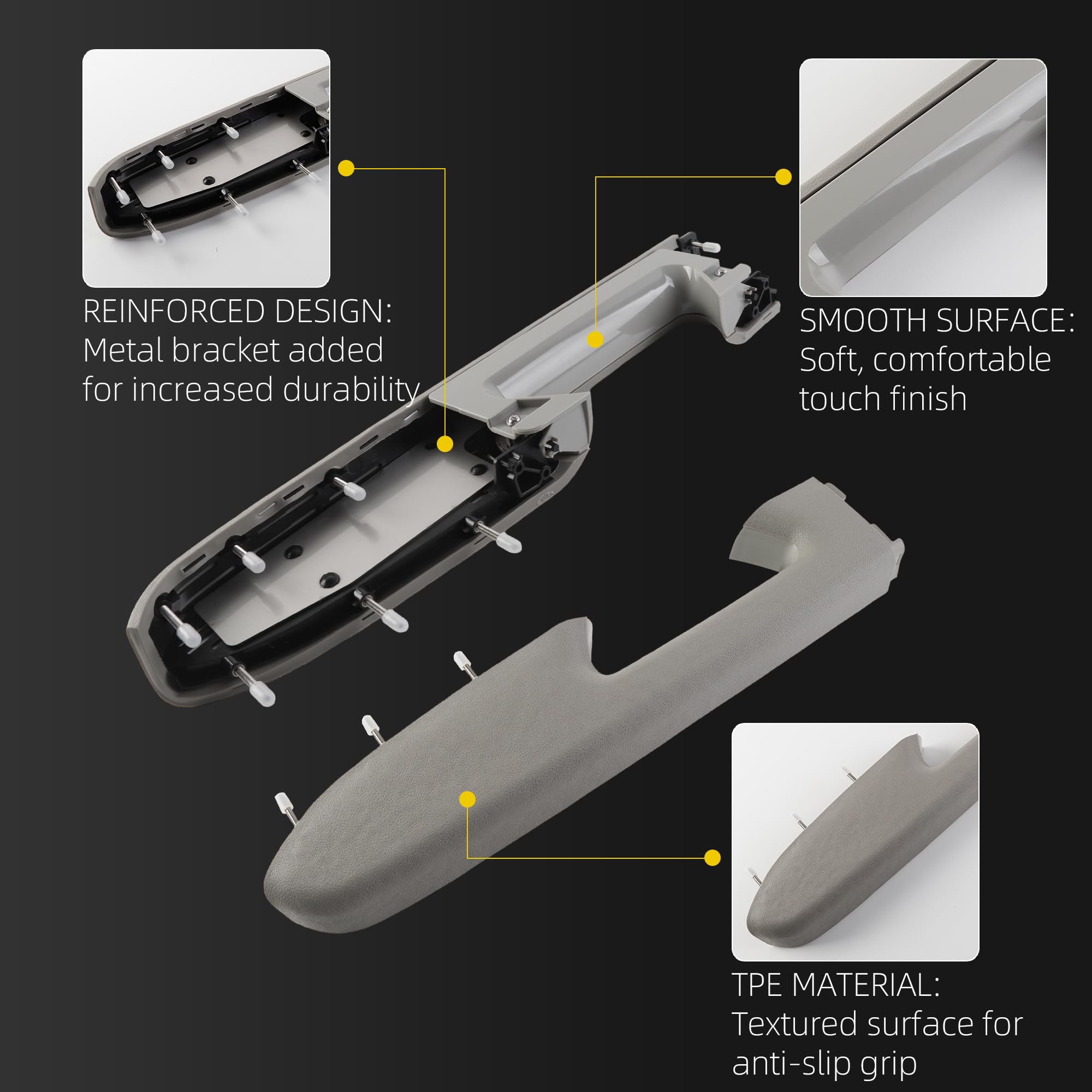【Product Features】Featuring an upgraded ABS plastic frame with an added metal support bracket in the middle of the armrest, this part delivers enhanced load-bearing capacity and improved crack resistance.