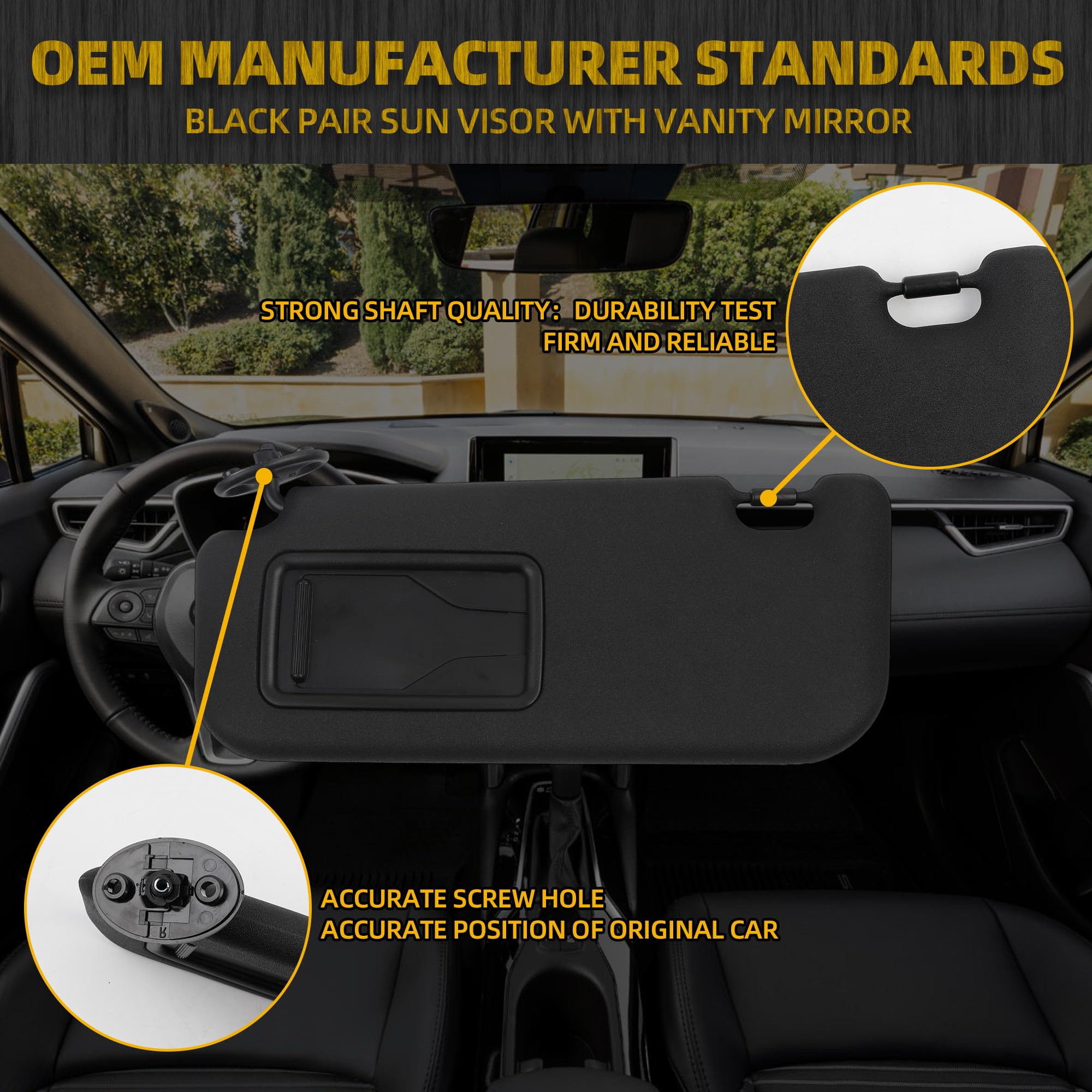 【Description】Black Pair Sun Visor with Vanity Mirror (Left Driver Side & Right Passager side)