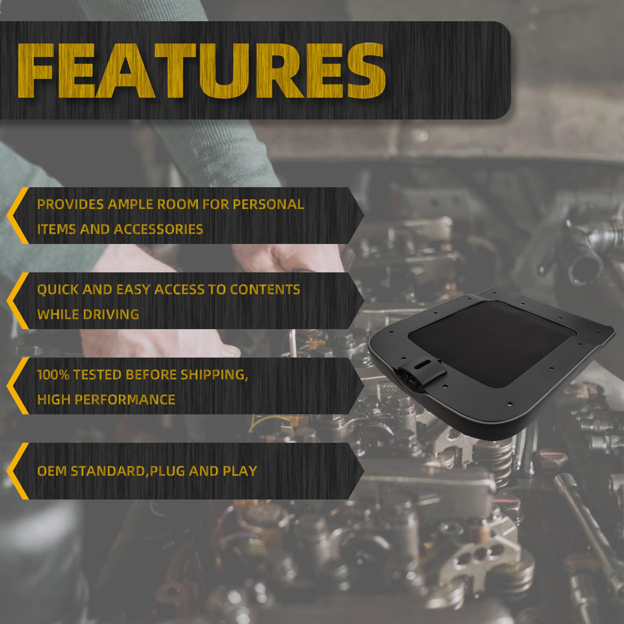 Features: The armrest bin lid is made of high quality plastic, sturdy and long-lasting. The surface is waterproof and oil-proof, easy to clean.