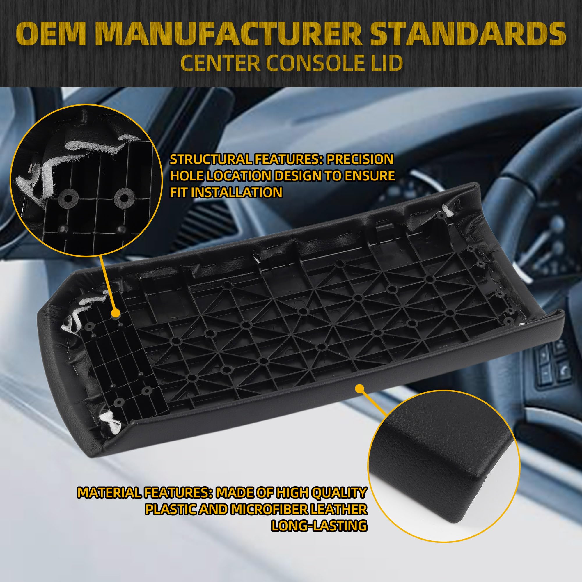 【Features】Our console lid is made of high quality plastic and microfiber leather, sturdy and long-lasting. This center console is waterproof and oil-proof, easy to clean.