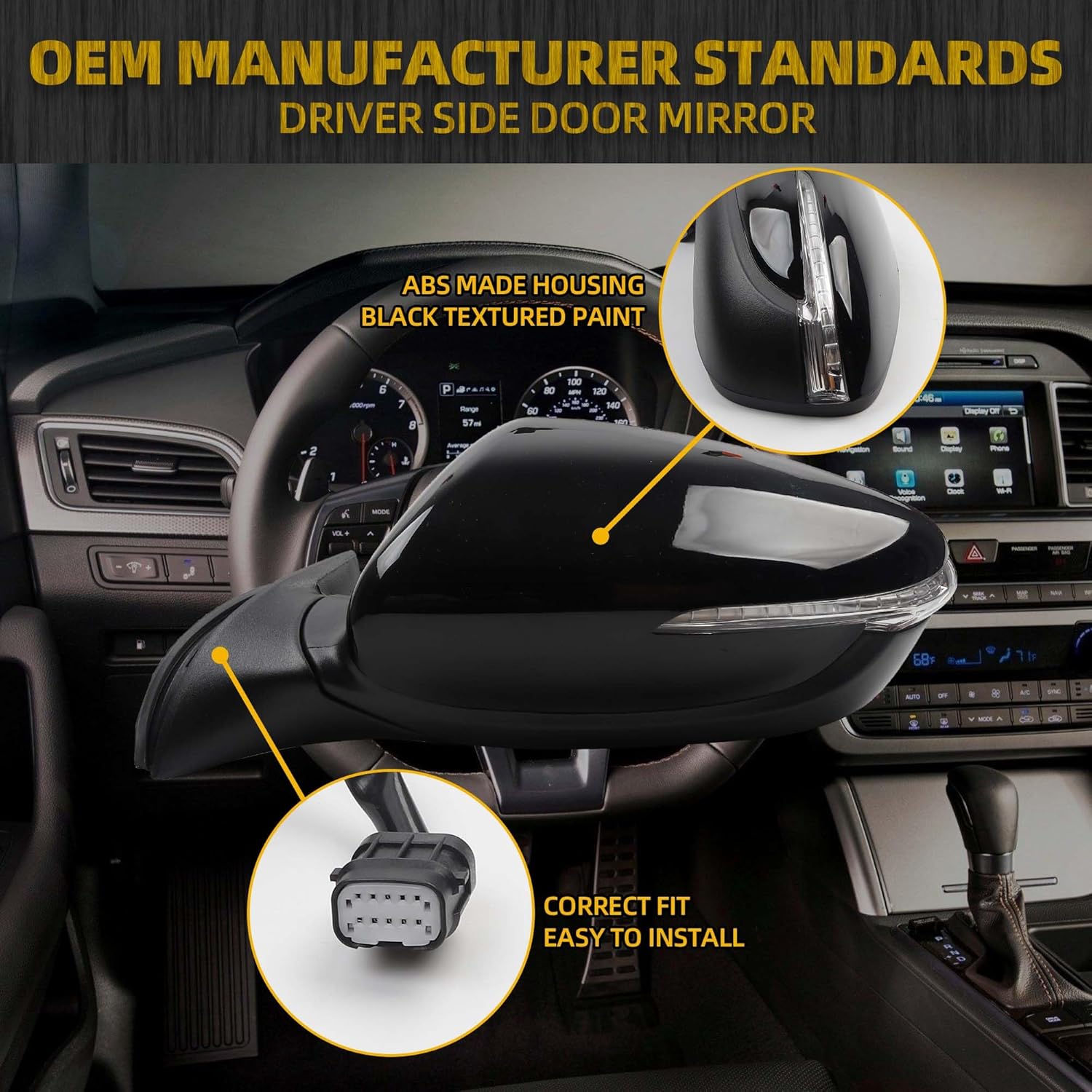 【Comaptible With】The Left Driver Side Mirror Compatible With Kia Forte 2014 2015 2016(Solid Black)
