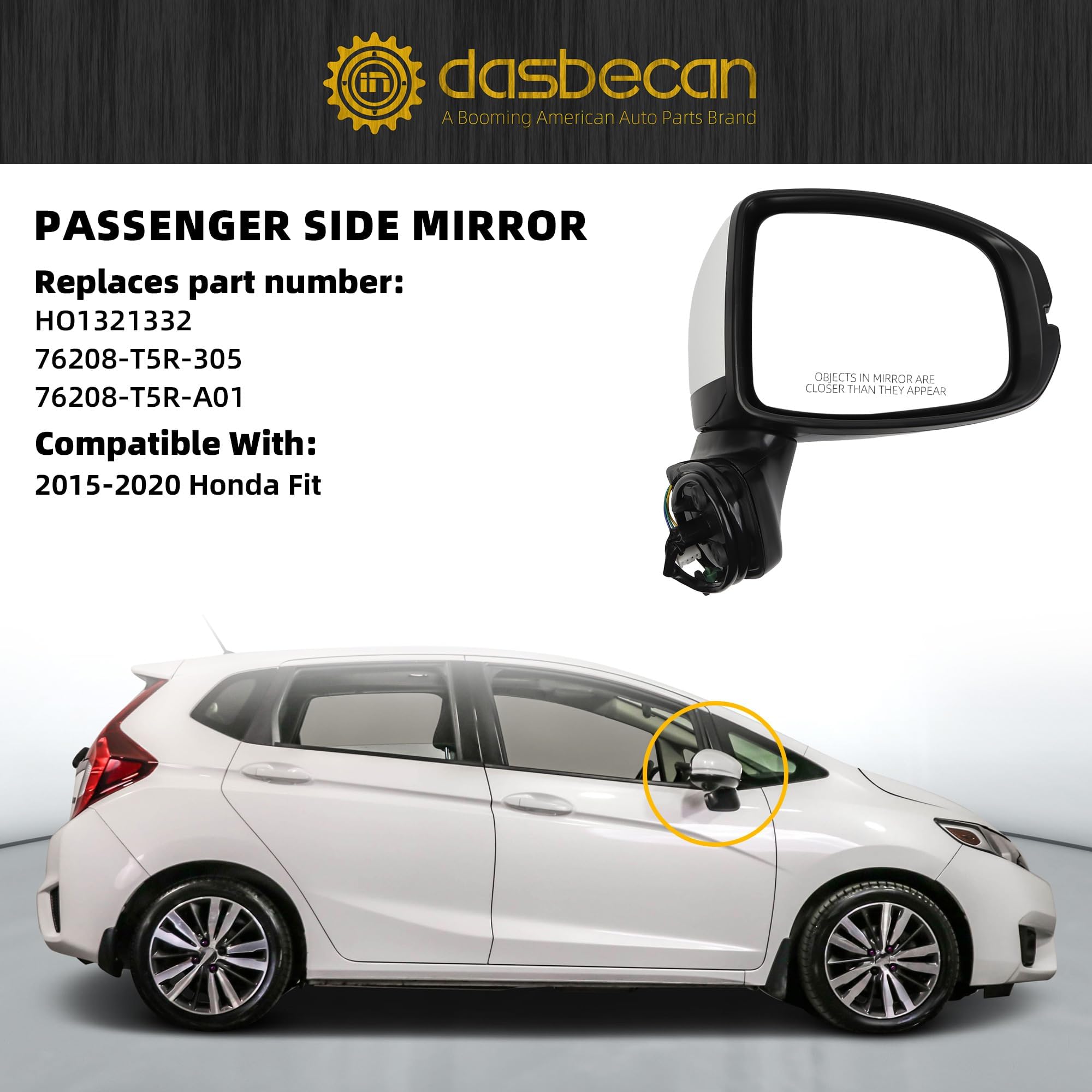 Compatible with: 2015-2020 Honda Fit/jazz, Passenger Side Mirror, White