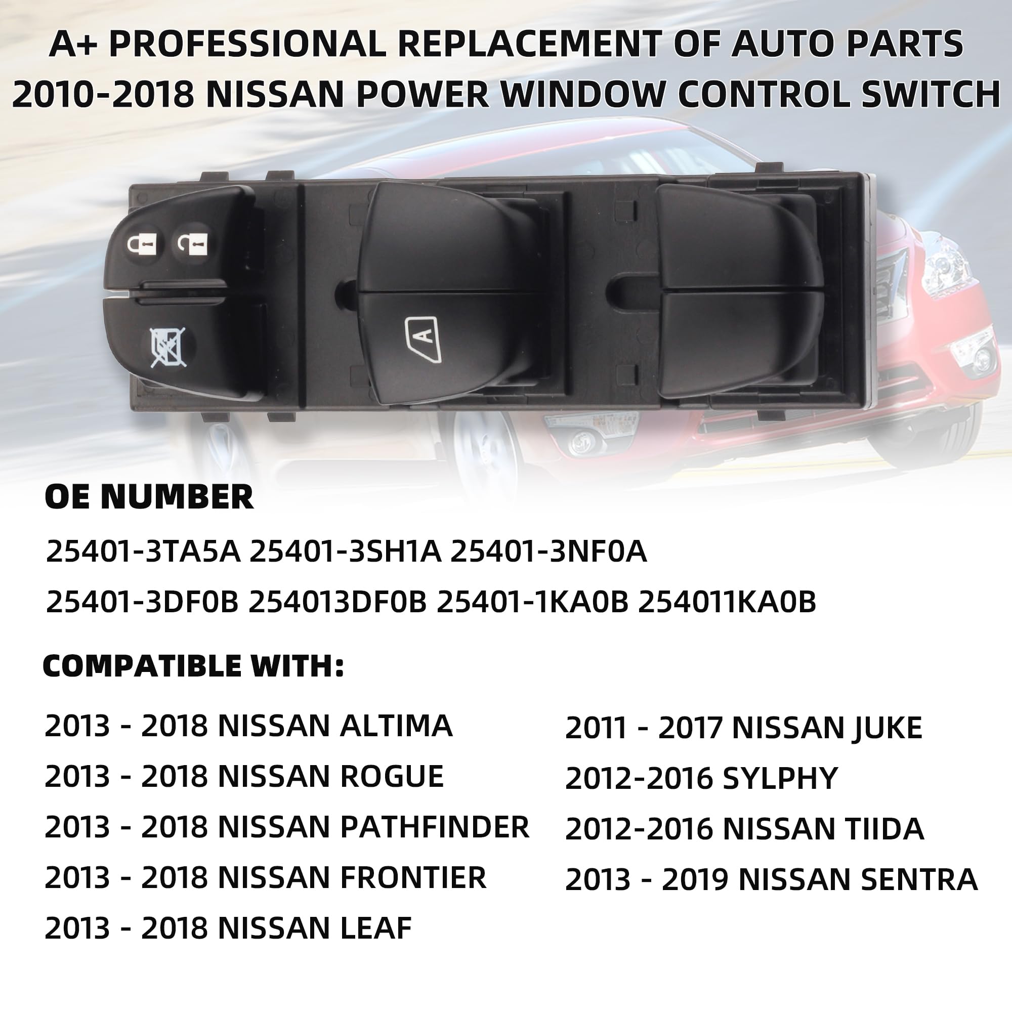 【Fitment】The Master Power Window Switch fits for 2013 - 2018 Nissan Altima / Rogue / Pathfinder / Frontier / Leaf ; Nissan Juke 2011-2017 ; 2012-2016 Sylphy ; 2012-2016 Nissan Tiida ; 2013-2019 Nissan Sentra