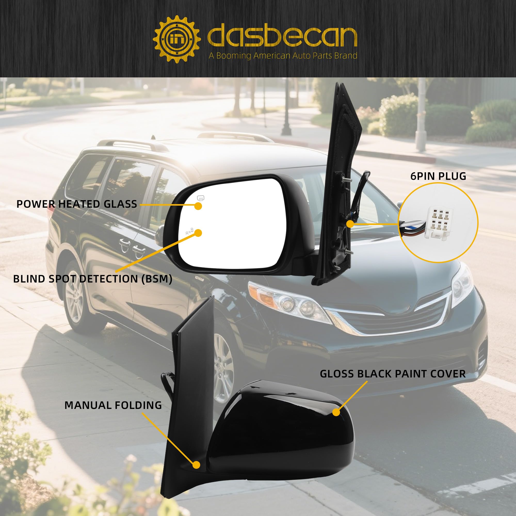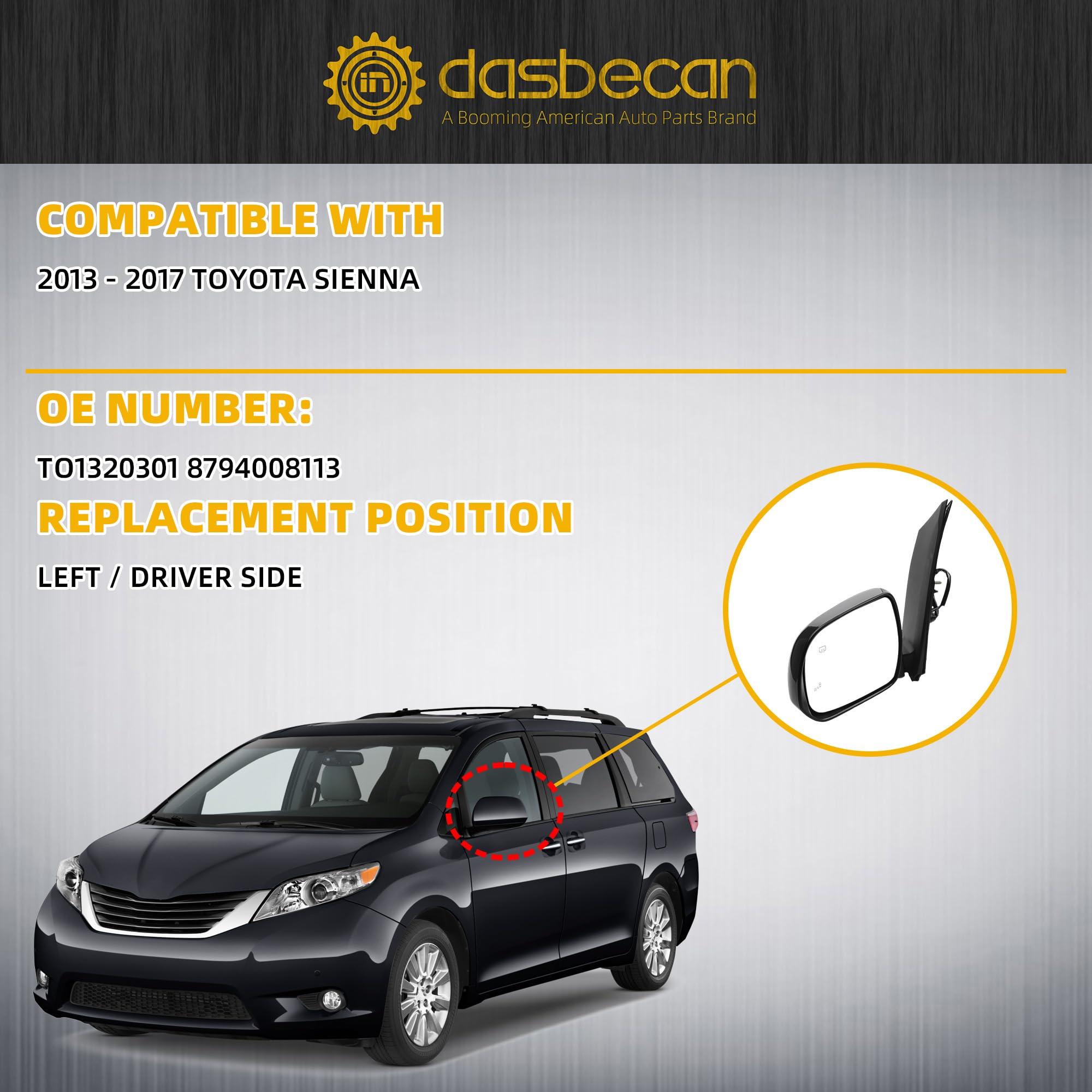 【Comaptible With】The Driver Side Mirror Compatible With 2013 2014 2015 2016 2017 Toyota Sienna Gloss Black Cover(6pins)