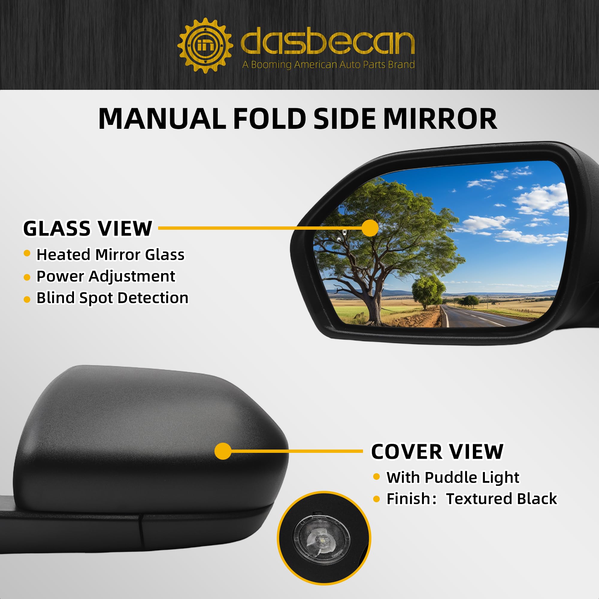 Specifications: Heated, Power Adjustment Glass, Manual Folding, Puddle Lights, Blind Spot