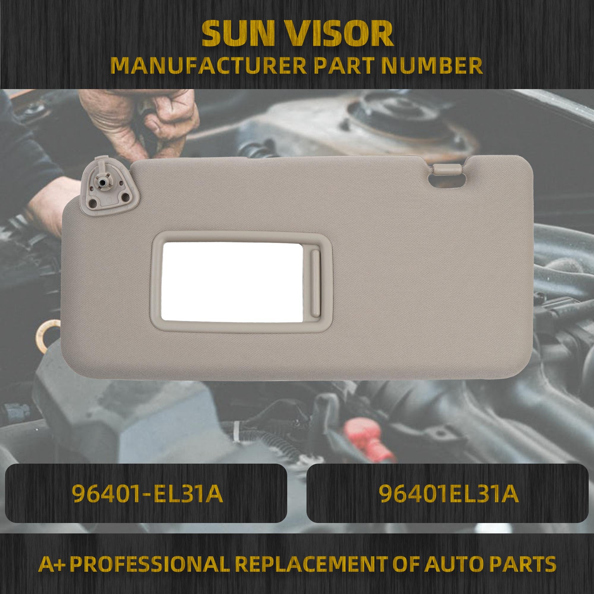 OE number:This gray left driver side sun visor supports following OE Numbers: 96401-EL31A,96401EL31A.
