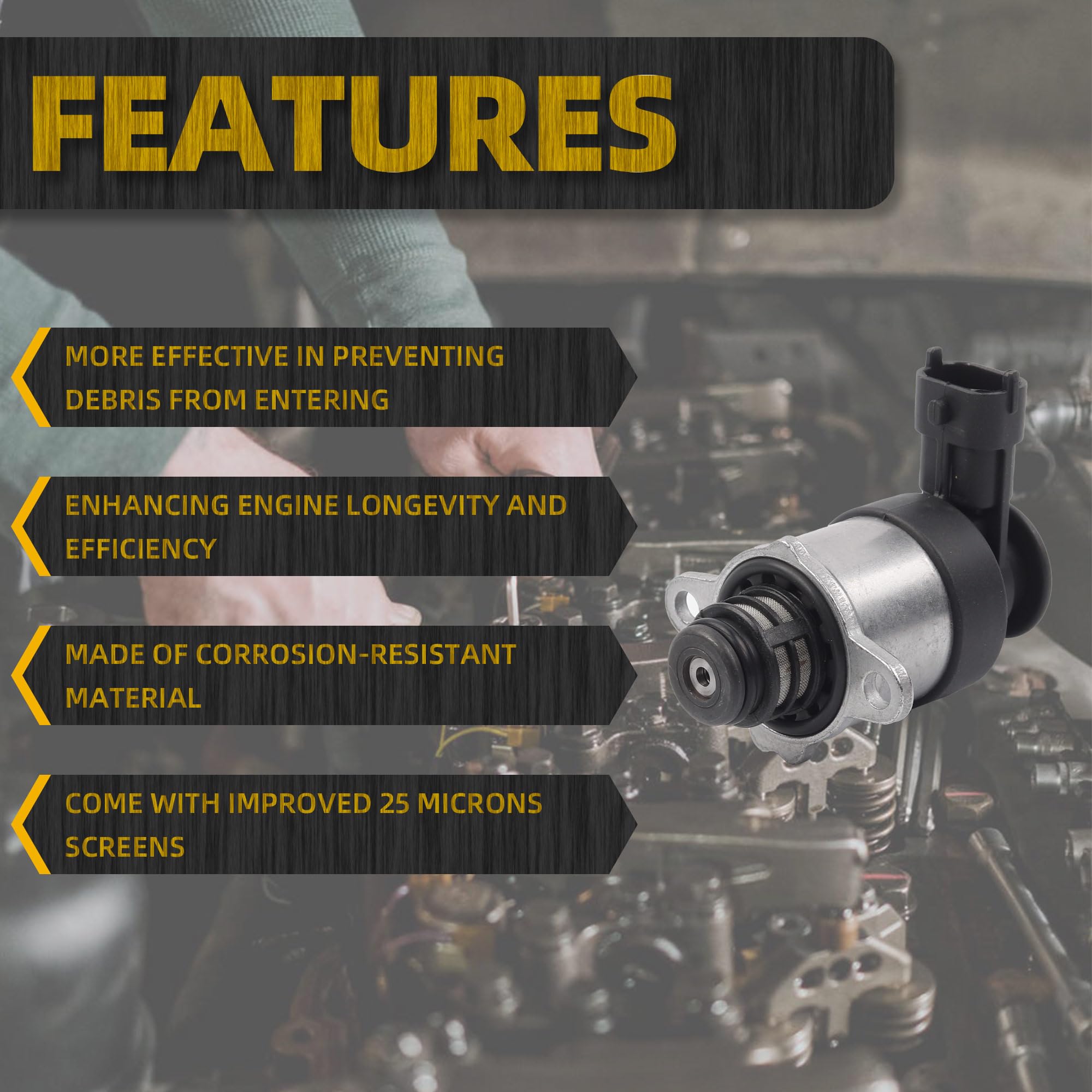 Perfect Fit: The Fuel Pump Control Valve can replace the original valve and is mainly used in 2011-2016 Chevy Silverado GMC Sierra 6.6 LML Duramax diesel engines.