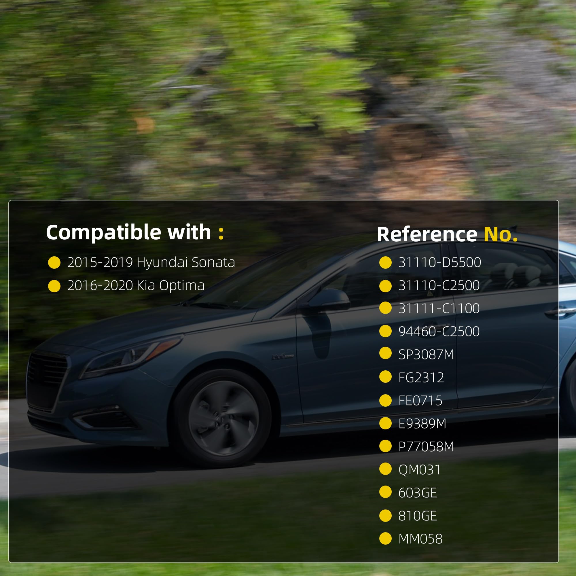 【EXACT VEHICLE COMPATIBILITY】 Specifically engineered as a direct replacement for the 2016-2020 Kia Optima and 2015-2019 Hyundai Sonata. This Electric Fuel Pump replaces multiple OEM and aftermarket numbers, including 31110-D5500, 31110-C2500, 31111-C1100, 94460-C2500, and SP3087M. Please verify your vehicle's year and model before purchasing.