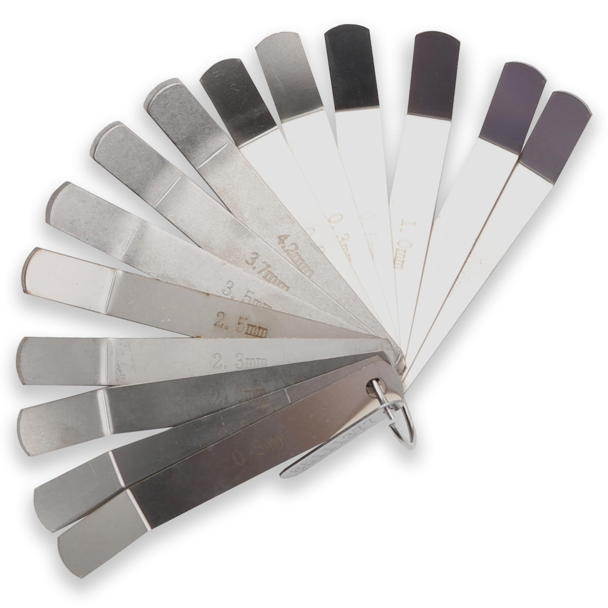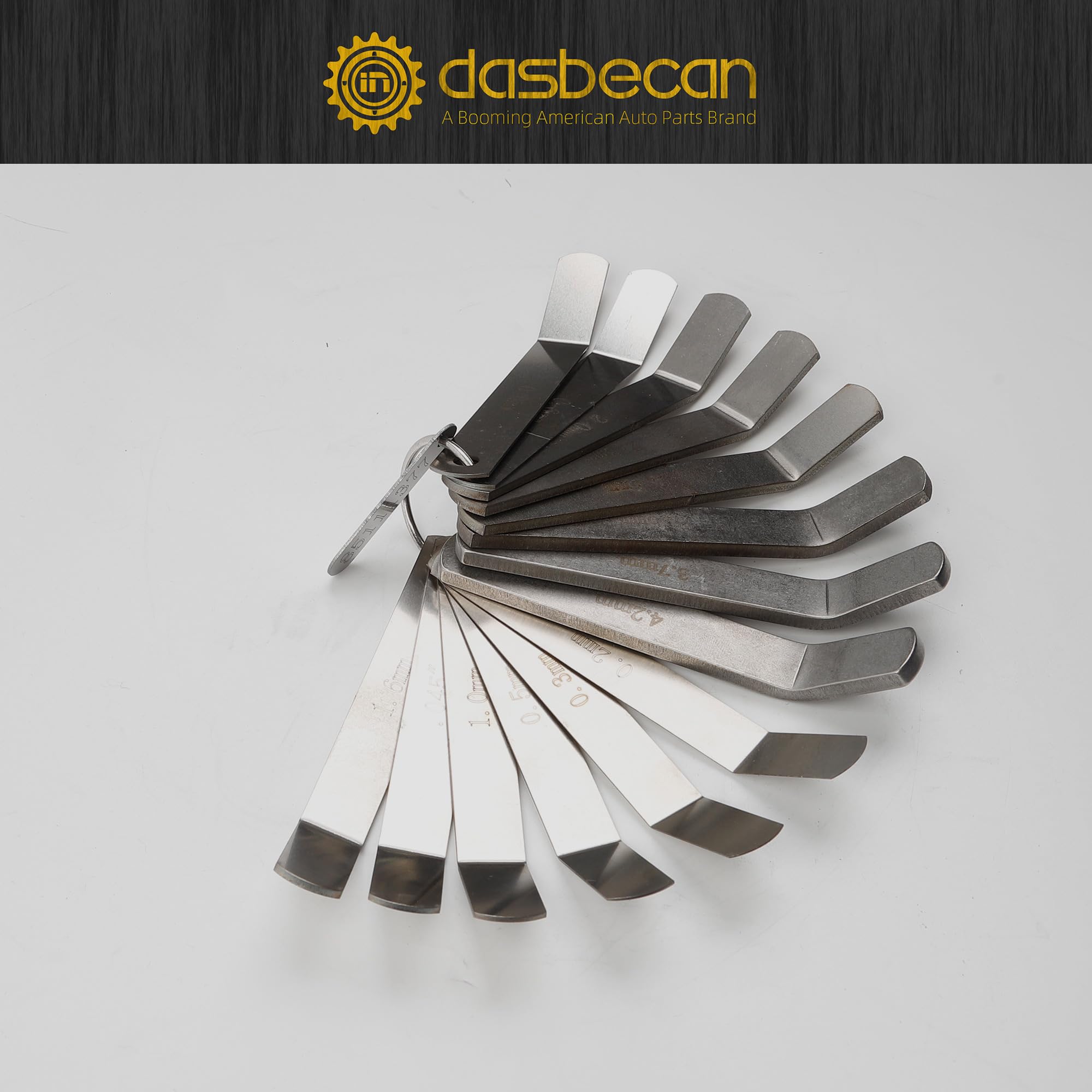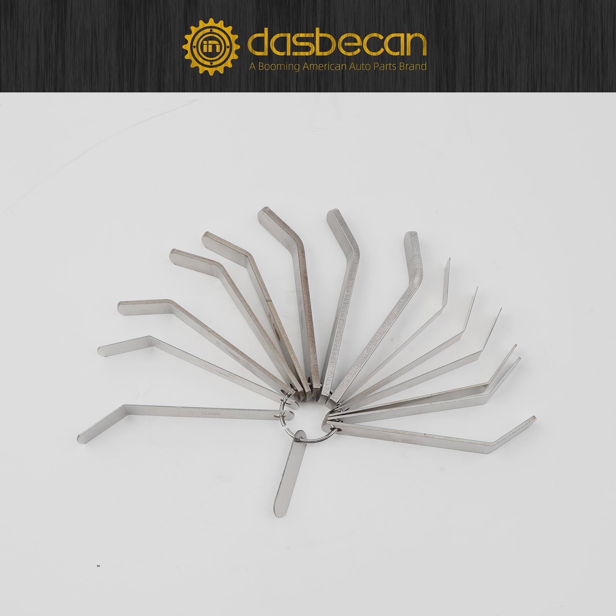 【Package Included】 The 14 PCS 88880053 Jake Brake Alignment Tools Set contains feeler gauges 0.2mm, 0.3mm, 0.5mm, 0.6mm, 0.8mm, 1.0mm, 0.045", 1.6mm, 2.0mm, 2.3mm, 2.5mm, 3.5mm, 3.6mm, 4.2mm.