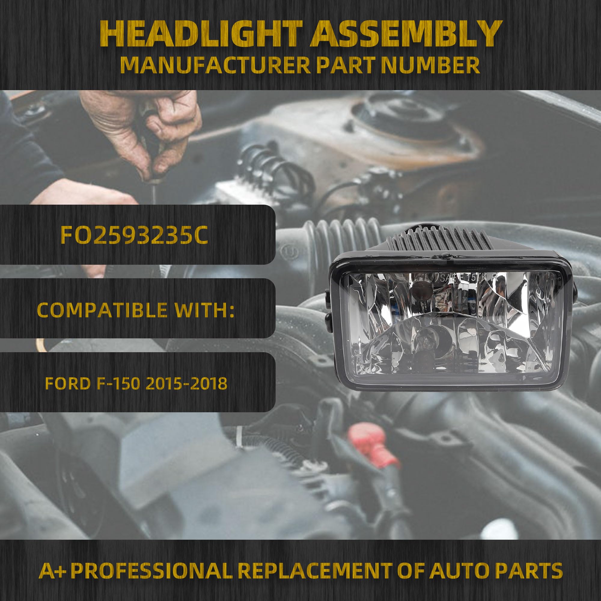Compatible With:Ford F-150 2015-2018 OEM:FO2592235C. Clear lens,with bulbs and socket.