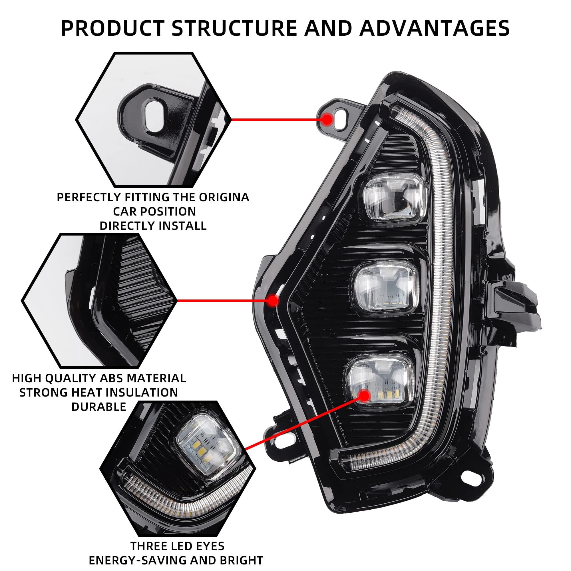 【Features】Toyota rav4 daytime led light is made of High quality ABS material, Strong heat insulation, OEM Standard ,Perfectly fitting the original car position,directly install