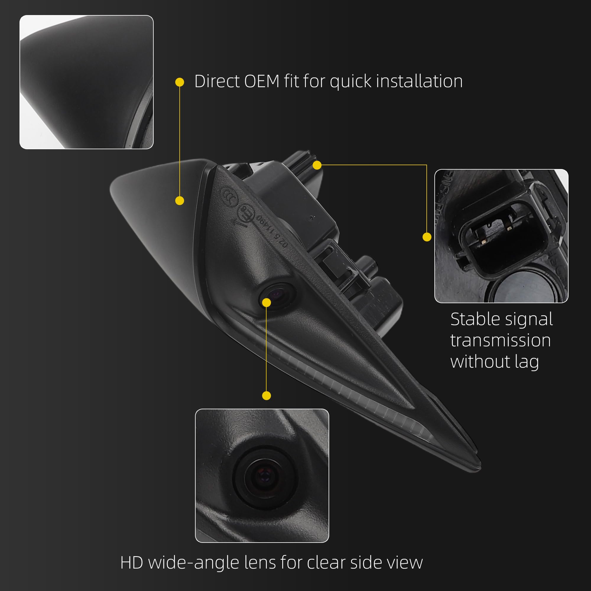 Advantage: Tesla Model 3 Repeater Camera, HD wide-angle lens for crystal-clear side views IP68 waterproof rating for all-weather reliability