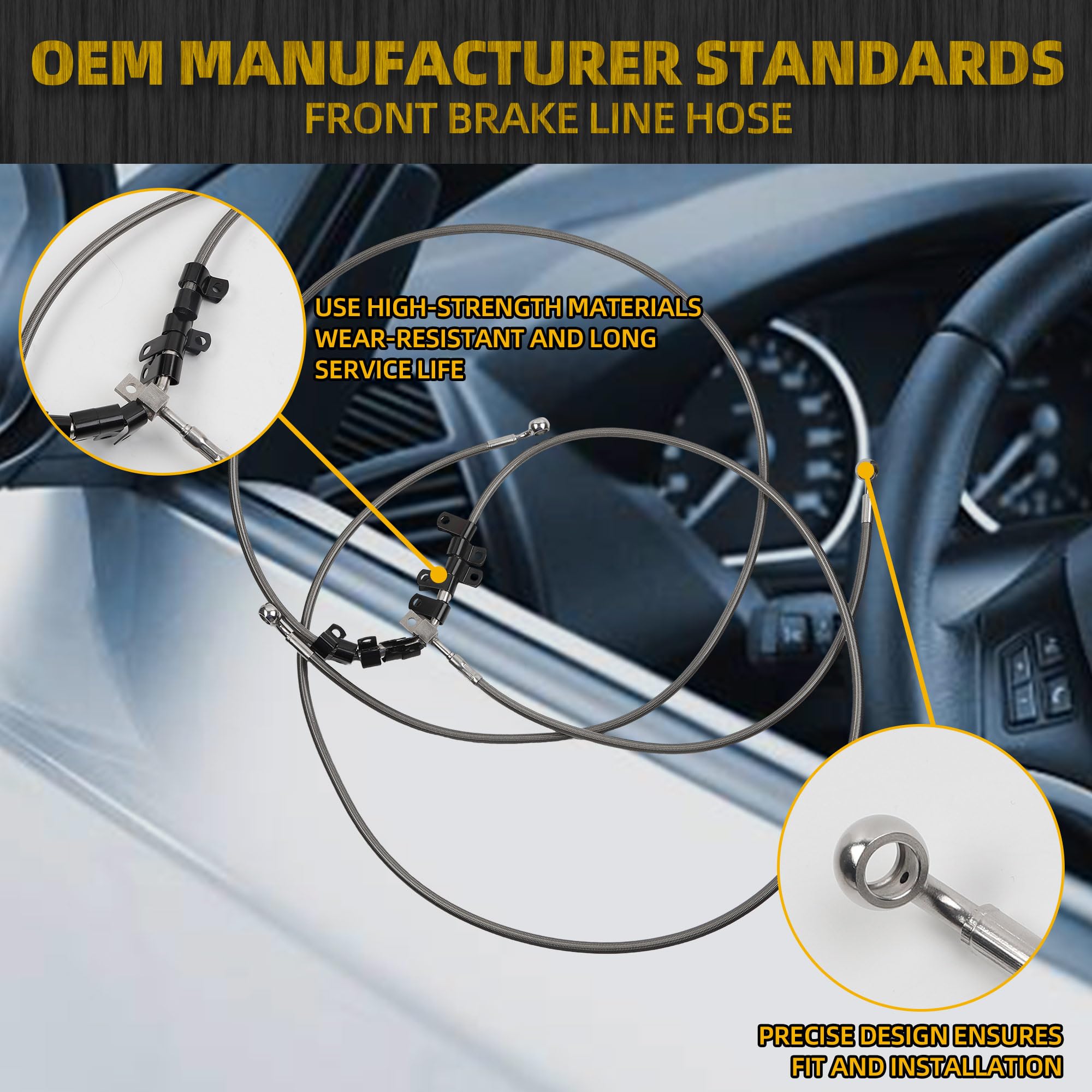 Sturdy Construction:Front flexible brake line hose assembly uses high-strength metal materials to adapt to different temperature environments and is not easy to age.