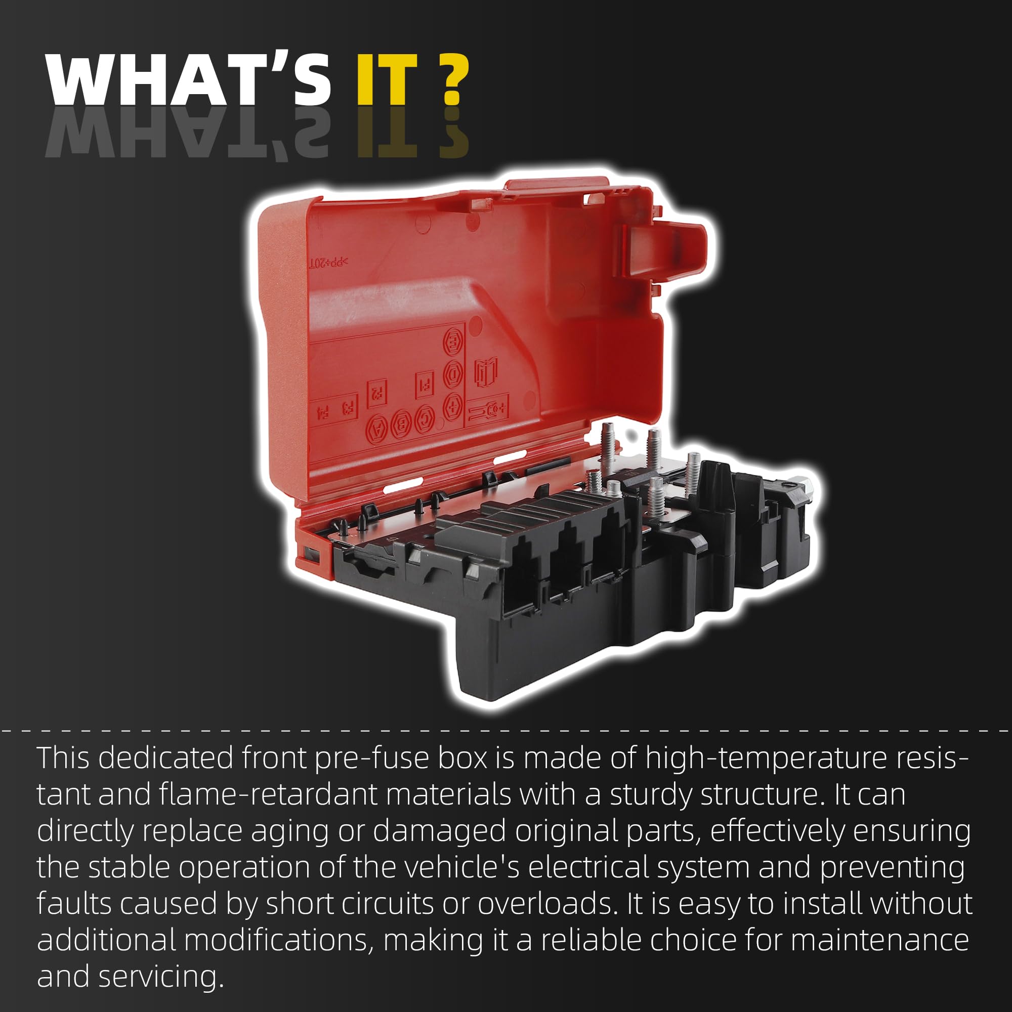 【Product Features】The pre-fuse box is made of high-quality materials, featuring high temperature resistance, impact resistance and durability.
