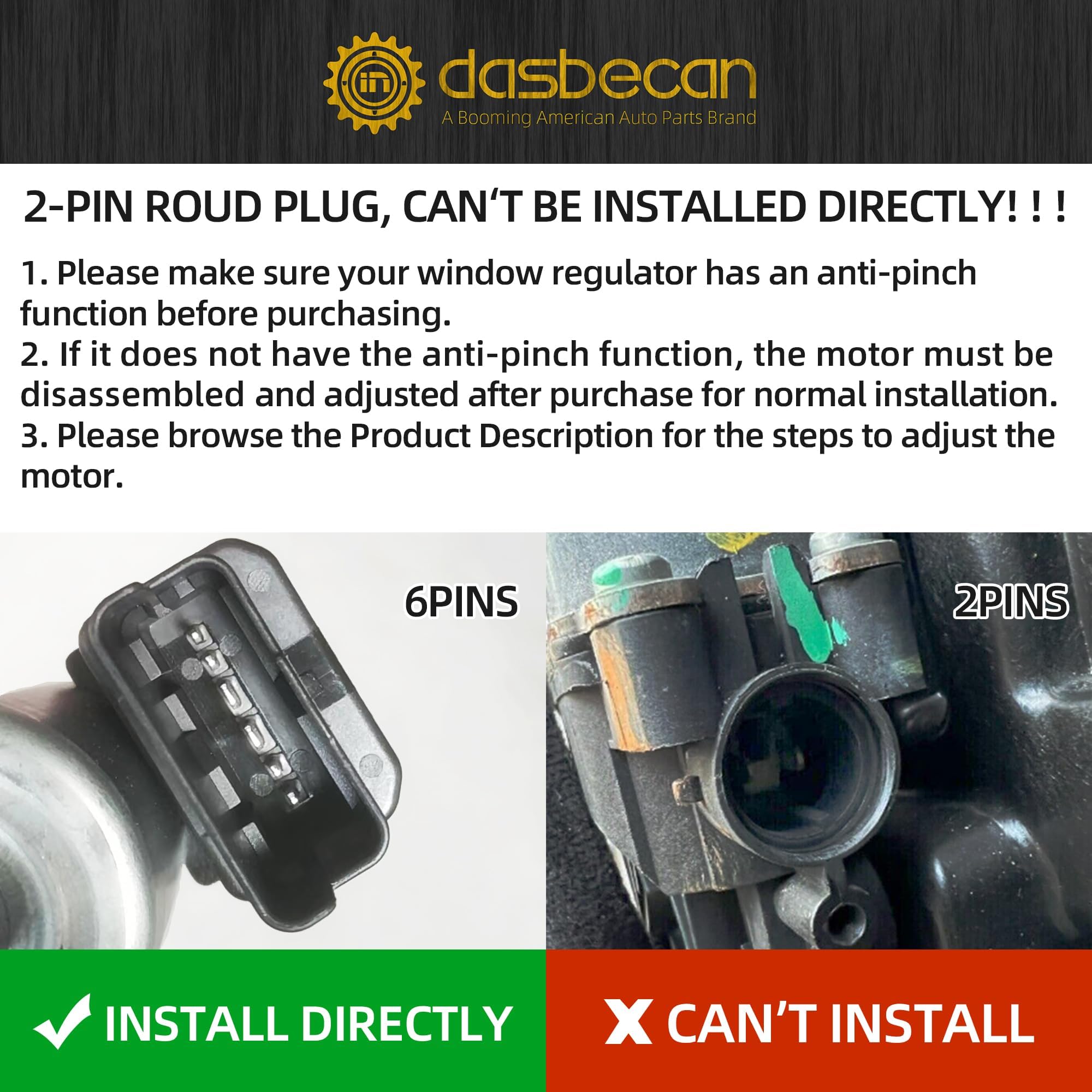 6-Pin Connector: Please note that our motor is equipped with anti-pinch function, 6 pins connector. The 6-pin connector can be removed to become a 2-pin connector. If the plug doesn't fit your vehicle, please follow the adjustment steps on the product description page below.