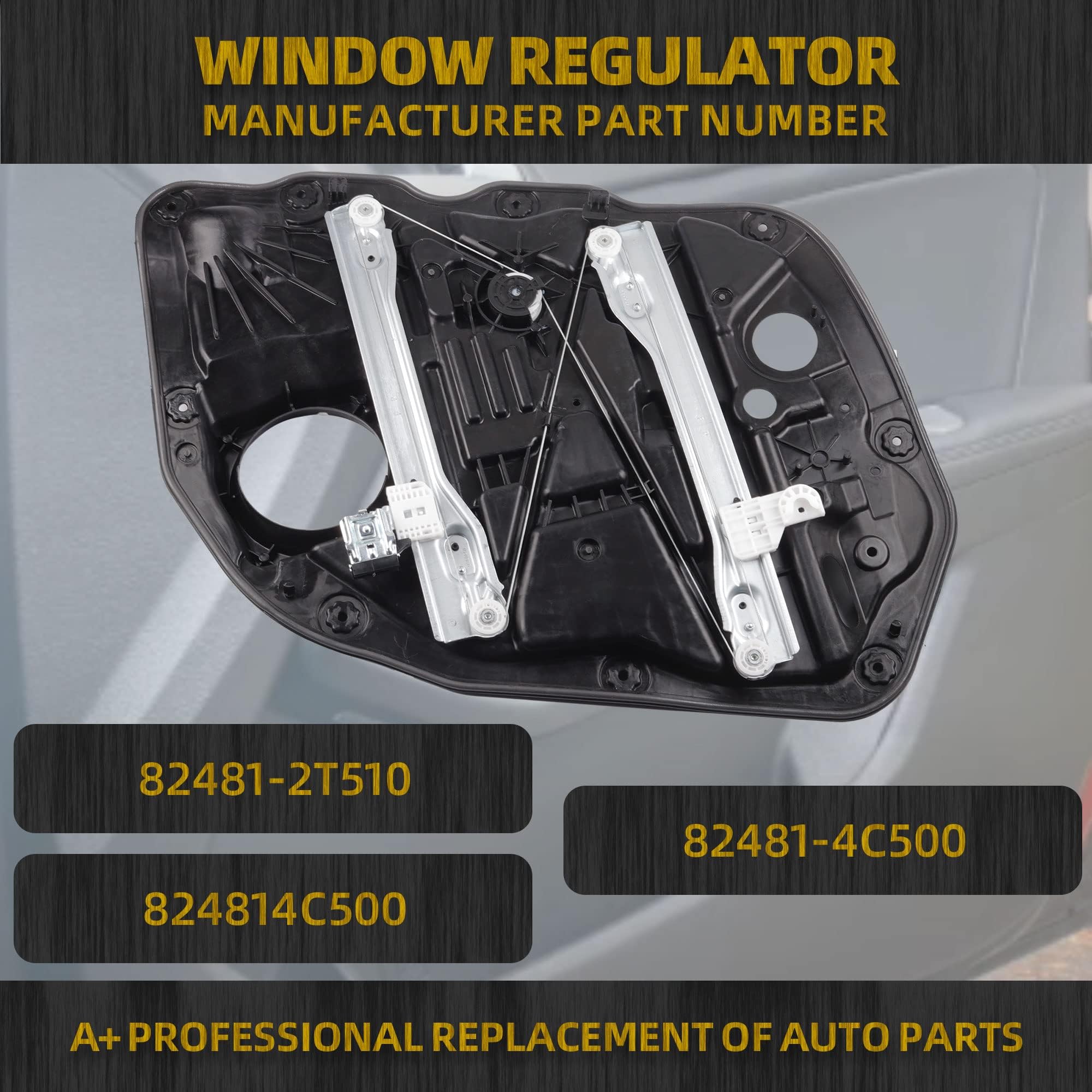 Replaces Part Number: 82481-2T510, 824812T510, 82481-4C500, 824814C500; Power Window Motor Replaces Part Number 82460-2T000, 824602T000.