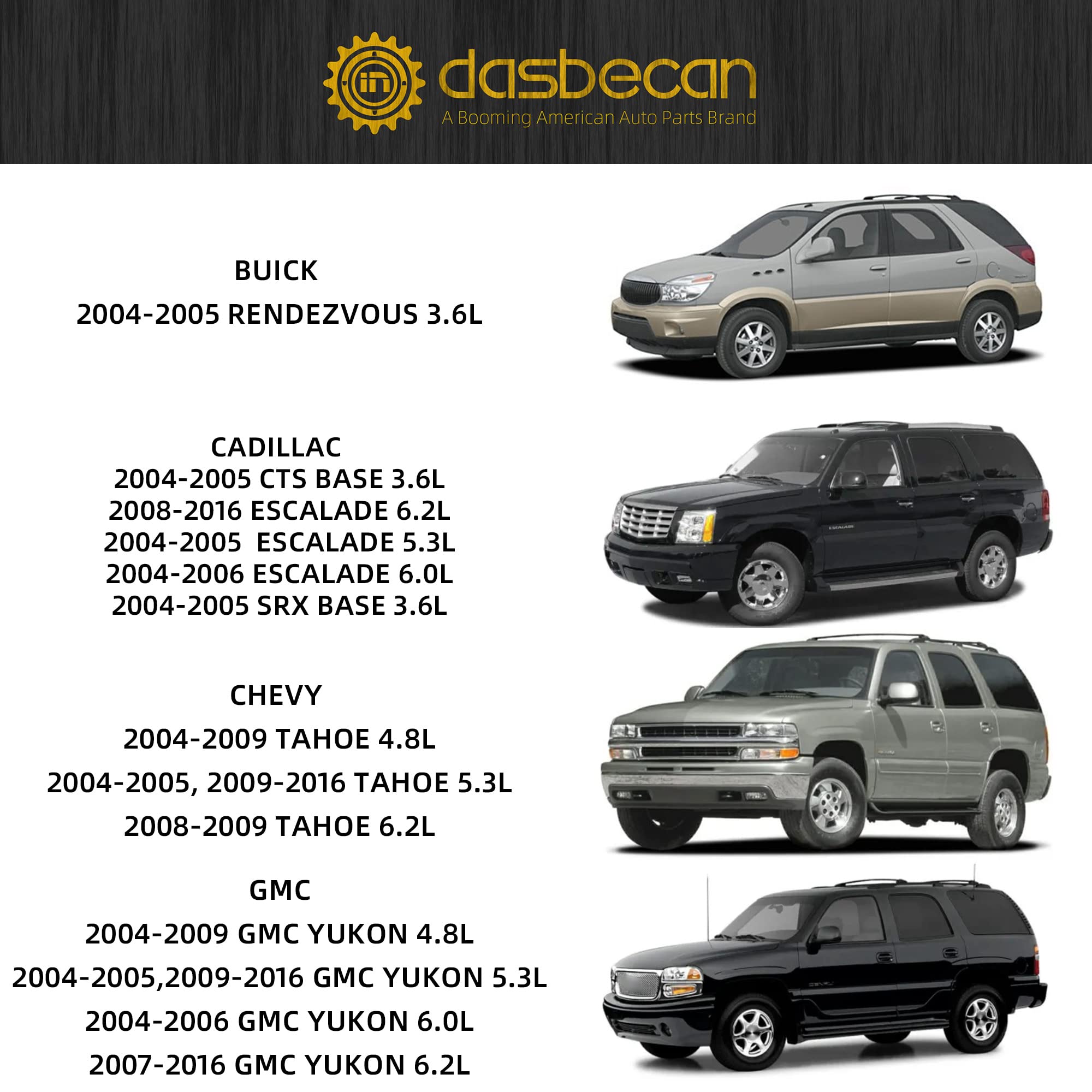 Fitment: Compatible with 2004-2005 Buick Rendezvous 3.6L; Compatible with Cadillac Models: 2004-2005 CTS Base 3.6L, 2008-2016 Escalade 6.2L, 2004-2005 Escalade 5.3L, 2004-2006 Escalade 6.0L, 2004-2005 SRX Base 3.6L.