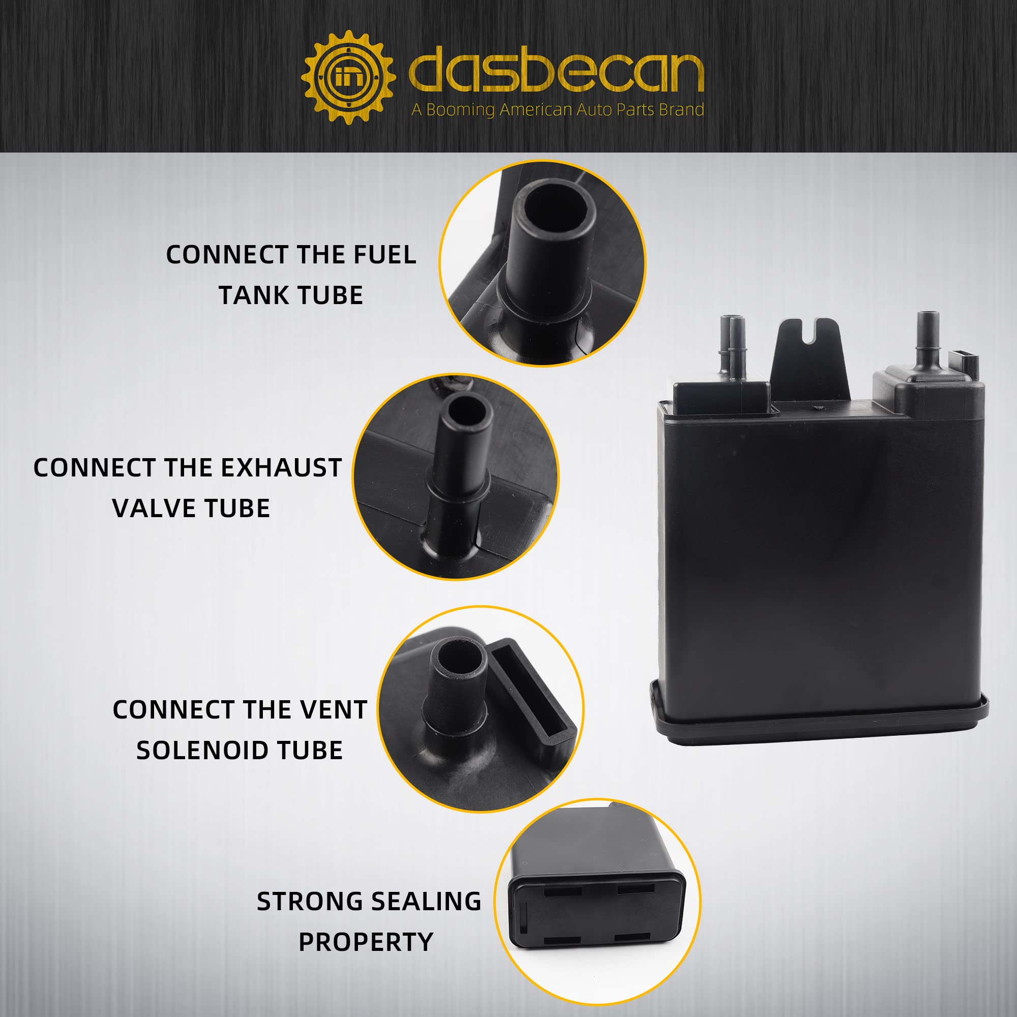 【Feature】Vapor Canister is an emission control component, it captures and stores evaporating fuel vapors from the fuel tank to be drawn into the intake manifold during engine operation. When the CEL (Check Engine Light) comes on with codes like P0440, P0442, P0449, P0453, the problem may be that the evap canister is failing. We highly recommend you replace the canister to properly repair issues with emissions controls.