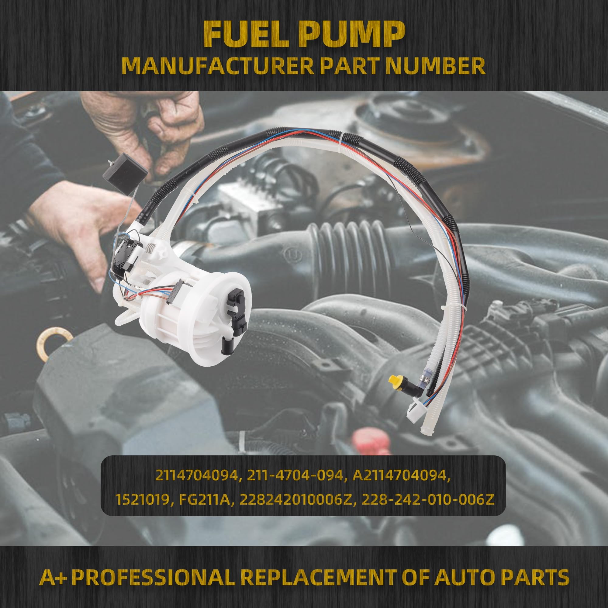 Features: This fuel pump assembly includes an integrated fuel filter, fuel level sending unit and pressure regulator. Made of high quality materials to withstand undercar heat and corrosive fuel, restore factory fuel sending unit function.