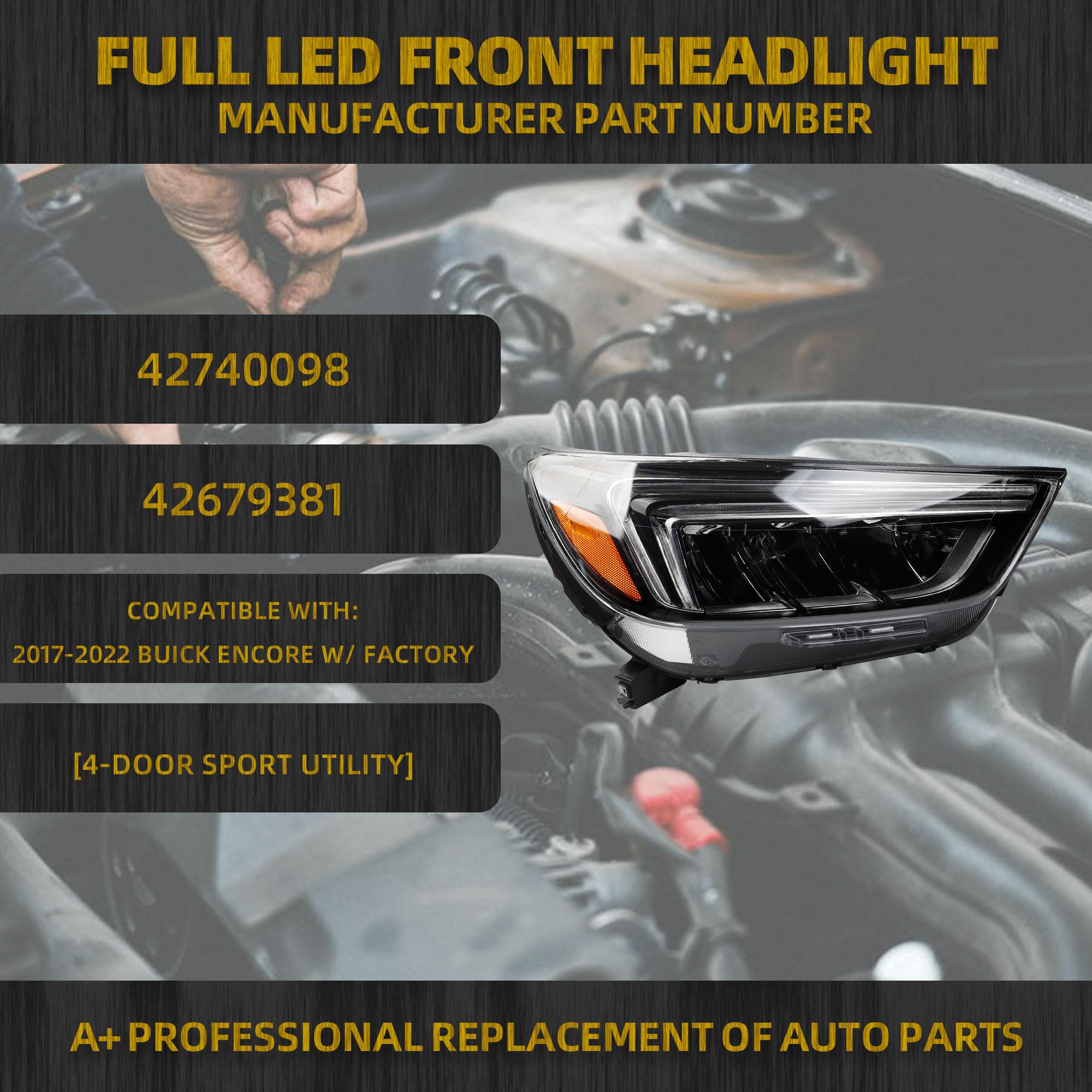 【Compatible with】2017 2018 2019 2020 2021 2022 Buick Encore factory,FULL LED Headlight Assembly Right Passenger Side. Please confirm your vehicle’s model and year before purchasing to avoid errors