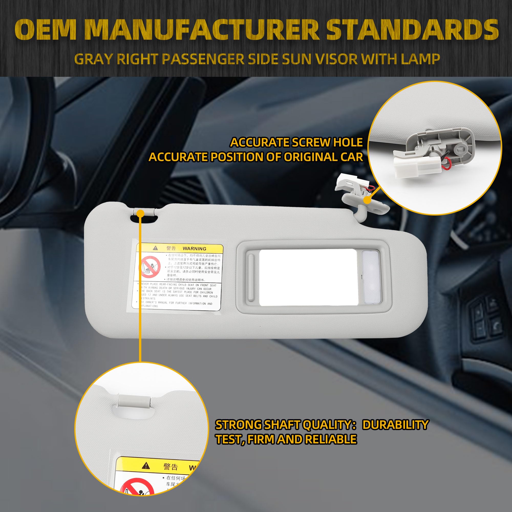 【Description】Mazda Gray Right Passenger Side Sun Visor Replacement with Vanity Light