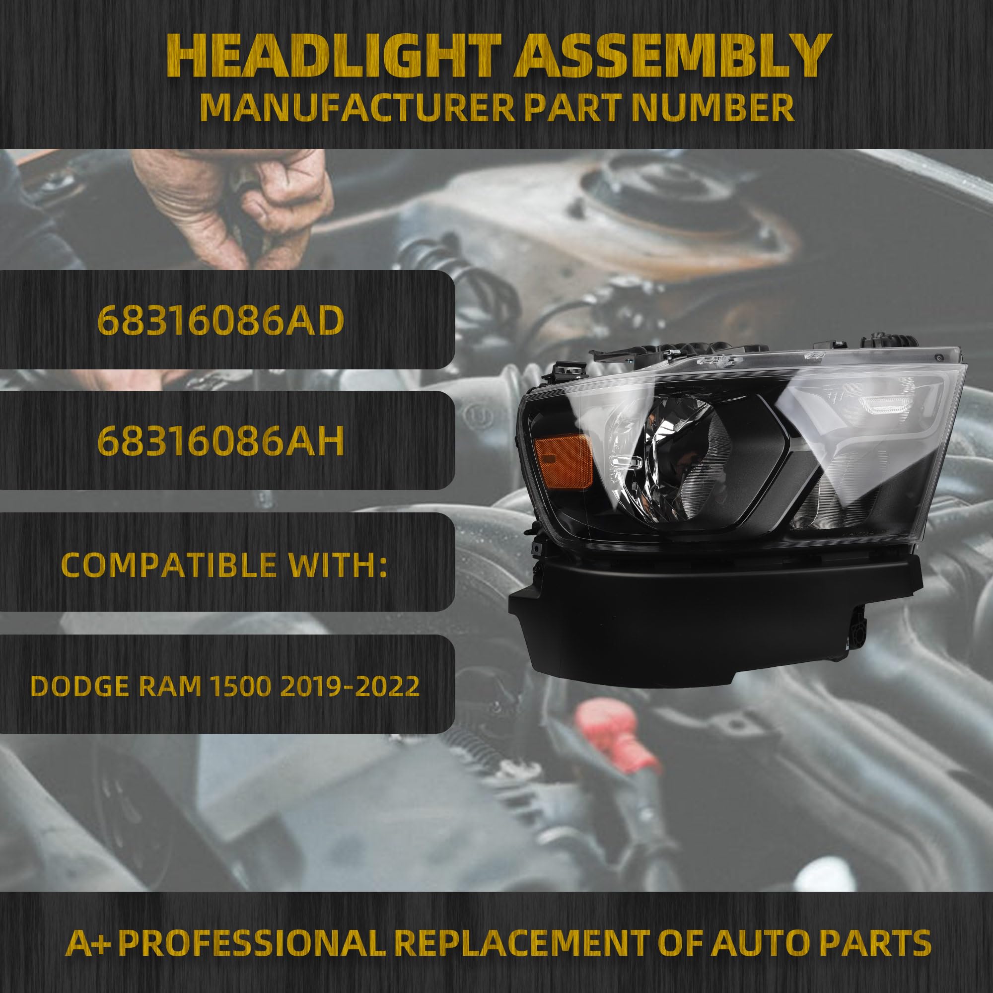Compatible With: Dodge Ram 1500 2019-2022.Only compatible with factory Halogen;Black Frame.