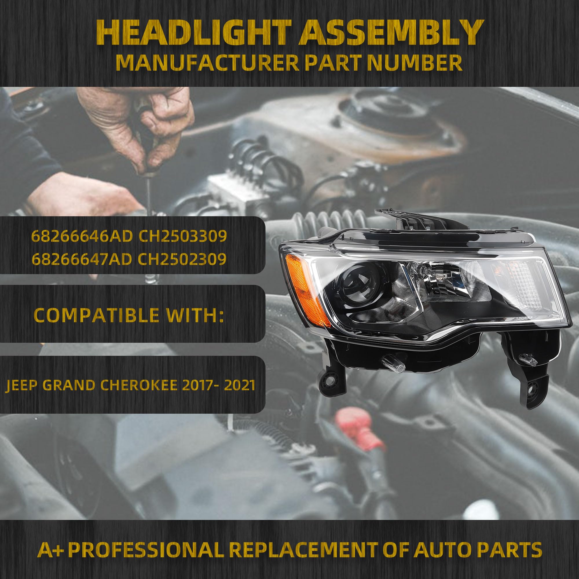 Compatible With: Jeep Grand Cherokee 2017-2021. (Only Compatible With Factory Halogen Headlight w/Chrome Trim Models. Not for HID Models). Bulbs Included.OEM:68266646AD CH2503309 68266647AD CH2502309