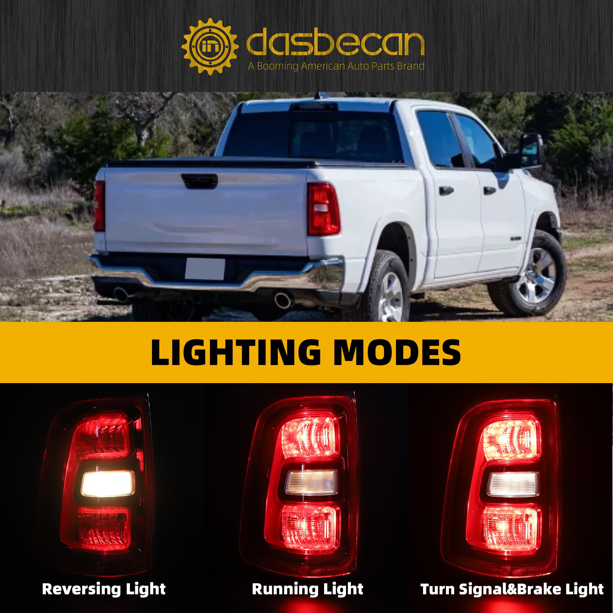 Fitment:The red bezel tail light assembly compatible with 2025 Dodge Ram 1500(Big Horn/Laramie/Lone Star).