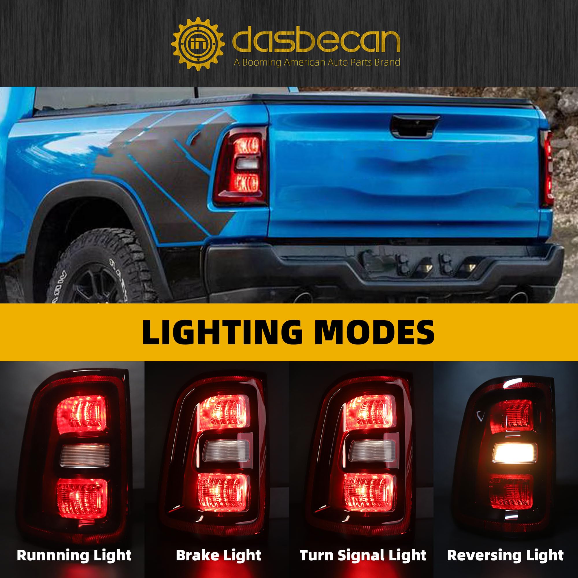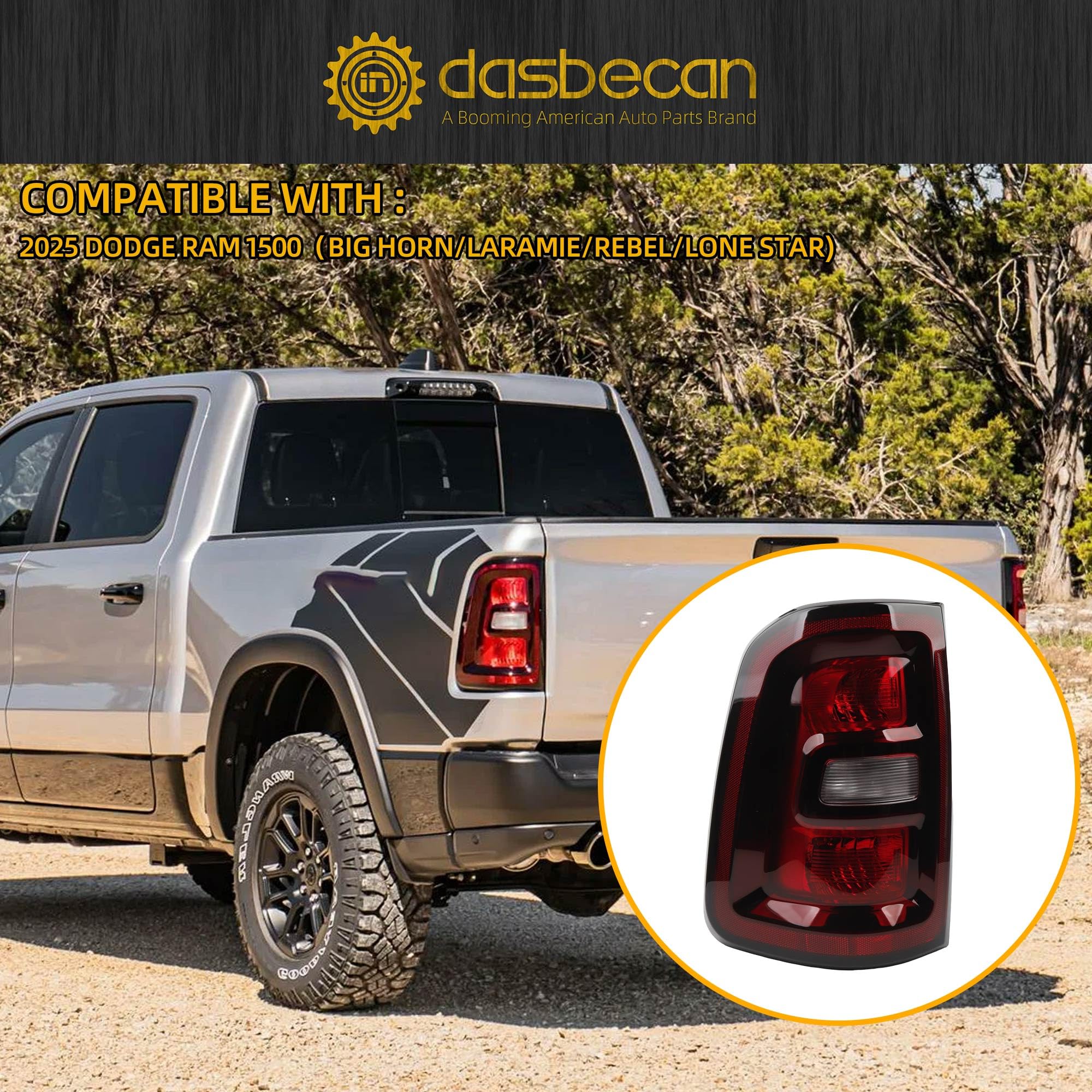 Fitment:The smoked black bezel tail light assembly compatible with 2025 Dodge Ram 1500(Big Horn/Laramie/Rebel/Lone Star).