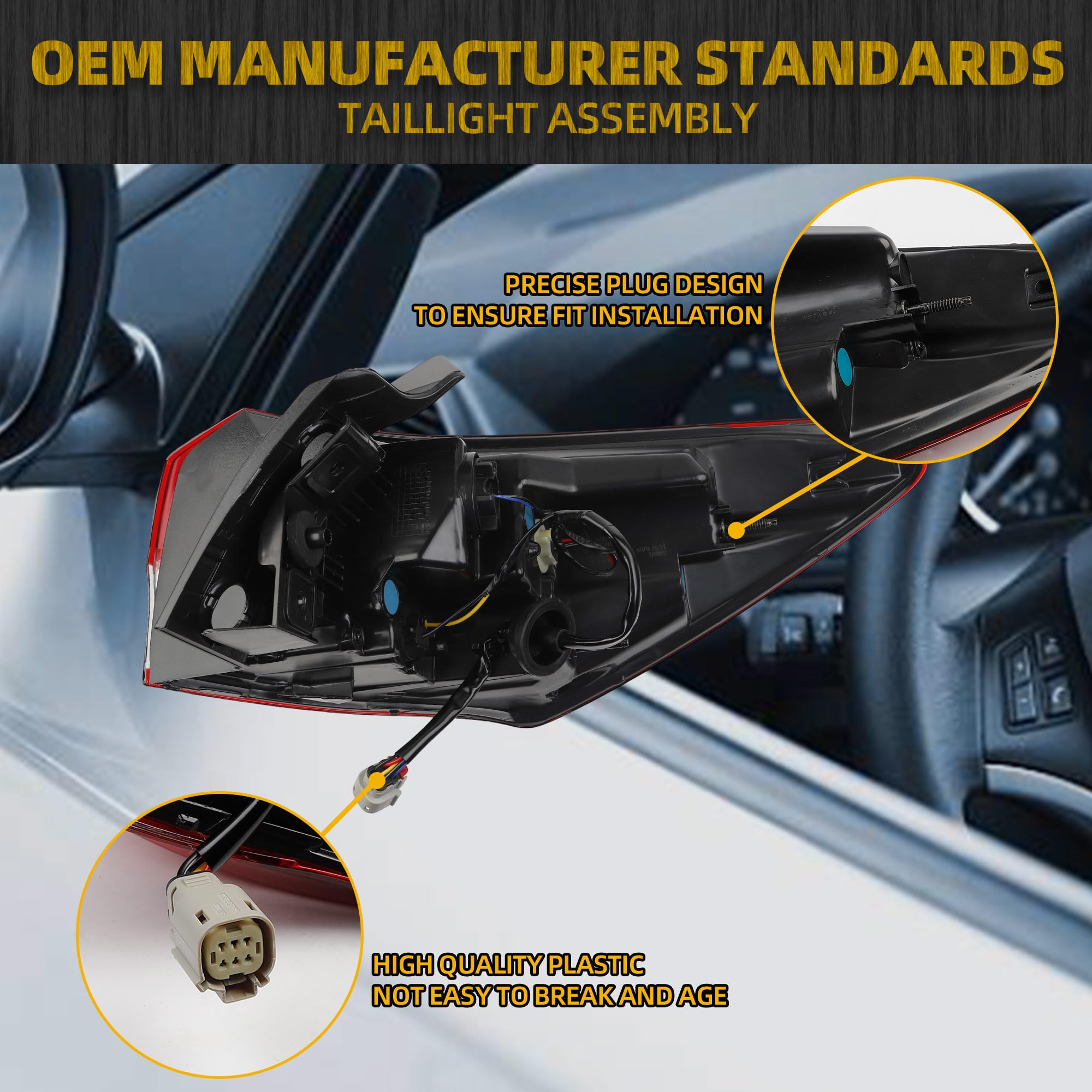Advantage:The taillight withstand weathering and impact like the OEM parts which protects your tail lights from damage and debris while driving.No wiring modifications required—connects directly to factory ports. Install in under 15 minutes easily.