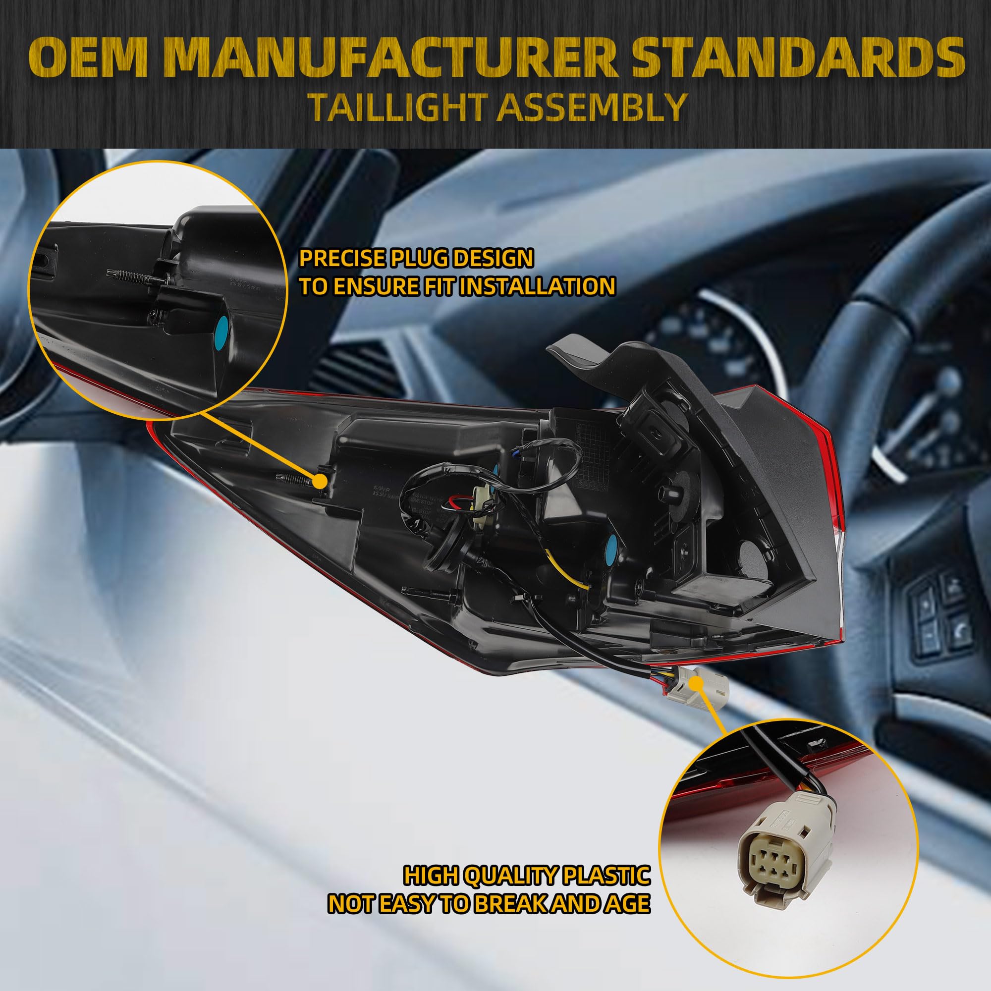 Advantage:The taillight withstand weathering and impact like the OEM parts which protects your tail lights from damage and debris while driving.No wiring modifications required—connects directly to factory ports. Install in under 15 minutes easily.