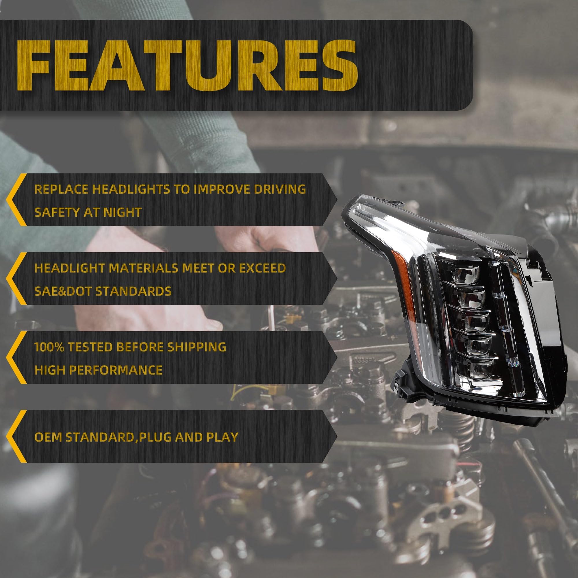 【Features】Cadillac Escalade Headlight materials meet or exceed SAE&DOT standards ,OEM standard, direct installation