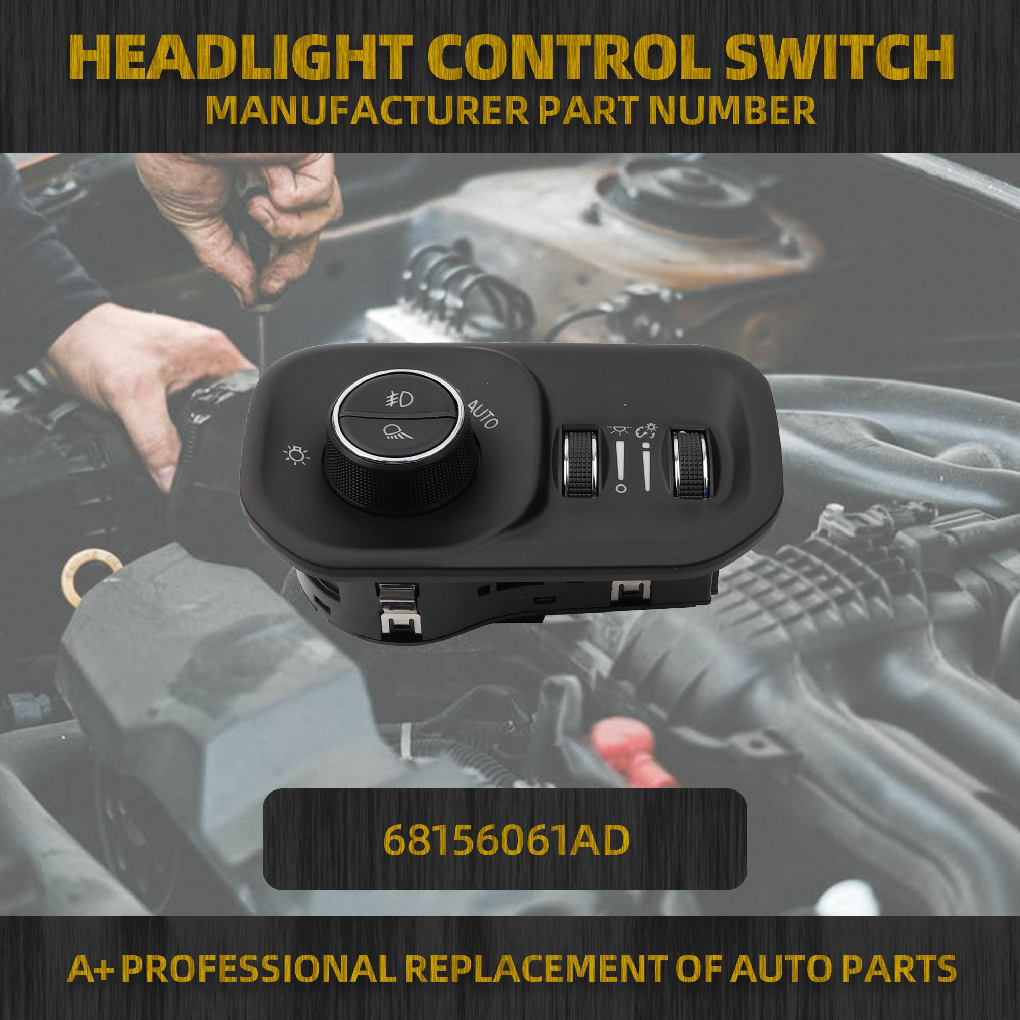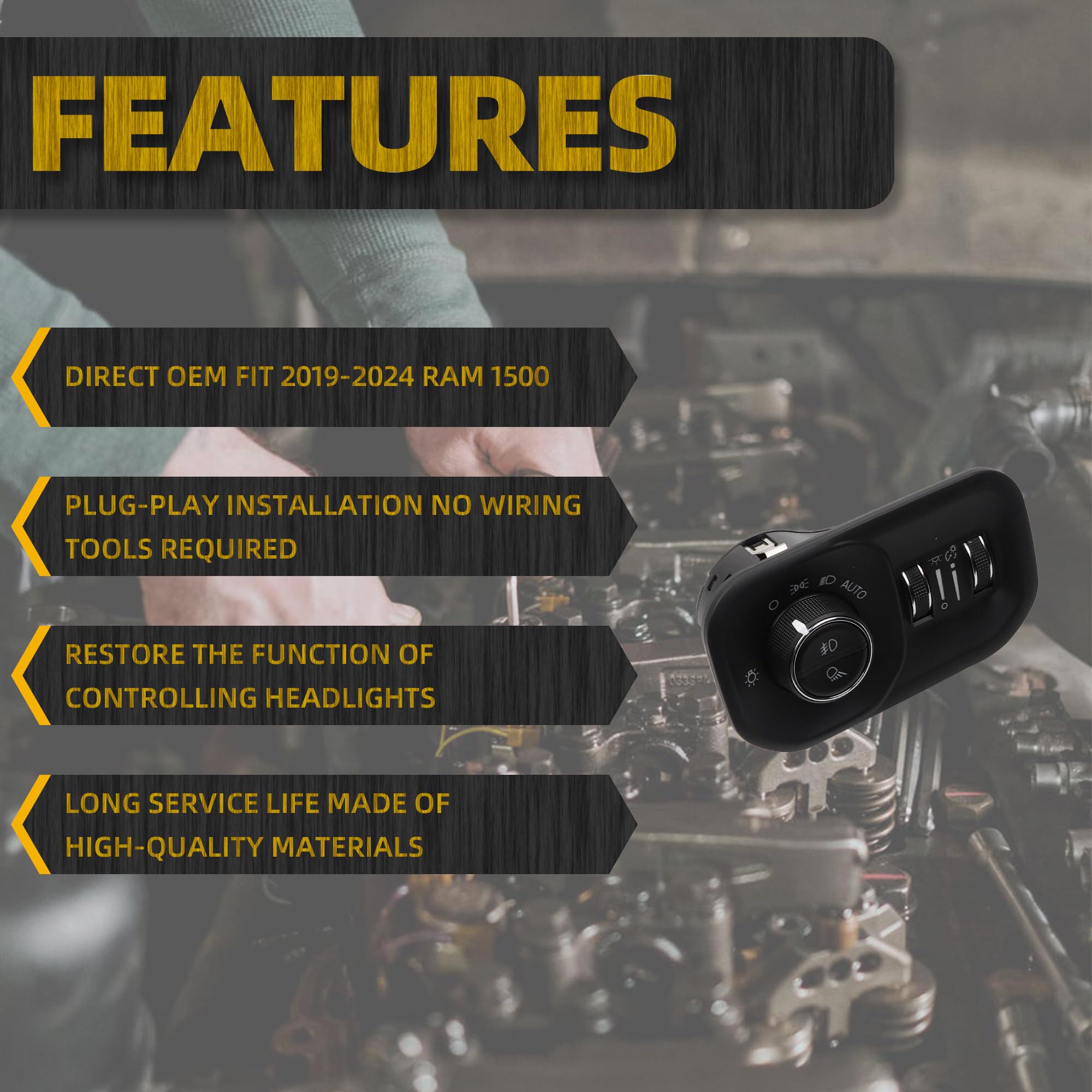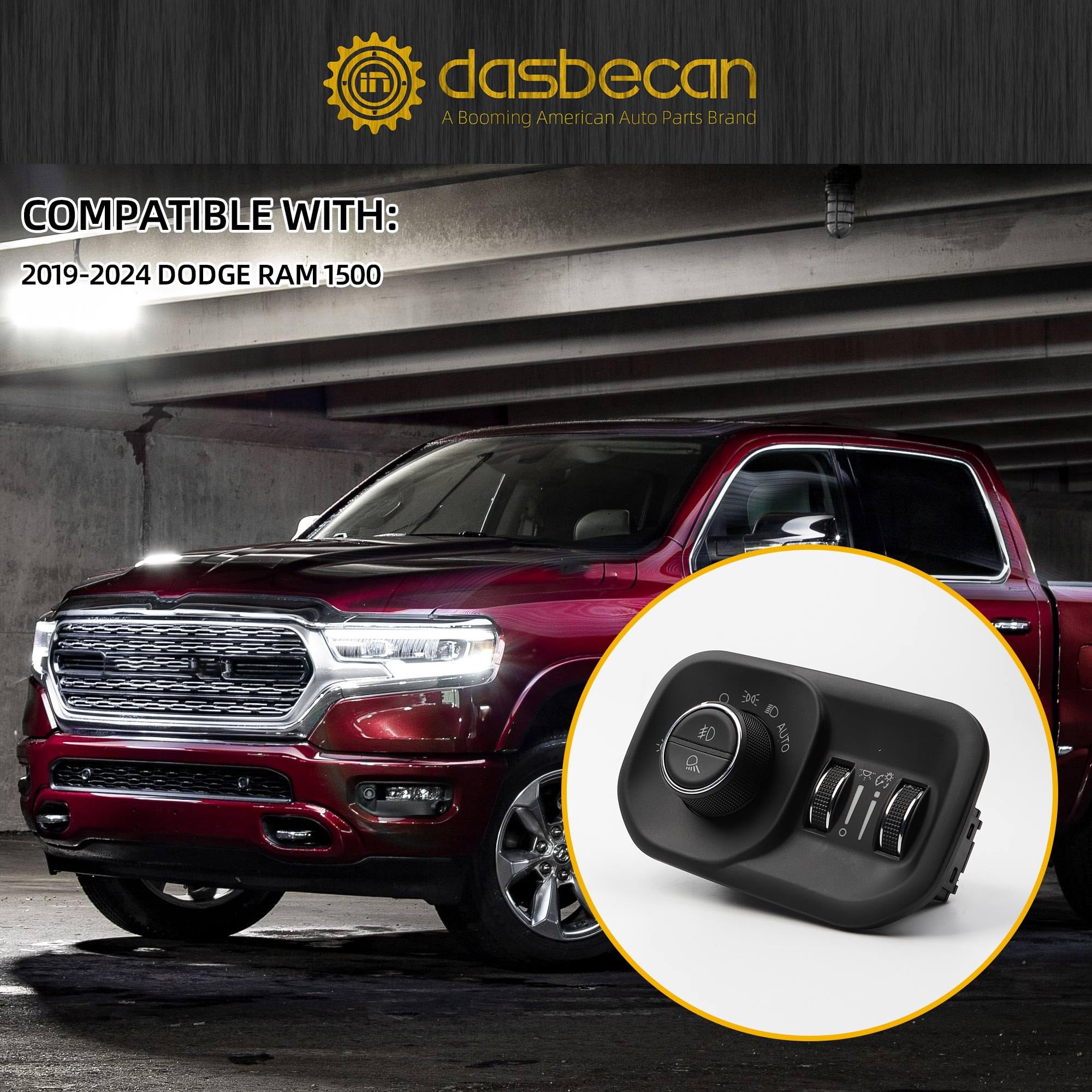 【Advantage】The Headlight Fog light Switch compatible with Ram 1500/2500/3500 2019-2024 With the OEM interface (#68156061AD), it is a plug-and-play product. It integrates the multi-functional control of headlamps and fog lamps, features a waterproof and dustproof design, and is sensitive in operation and durable.