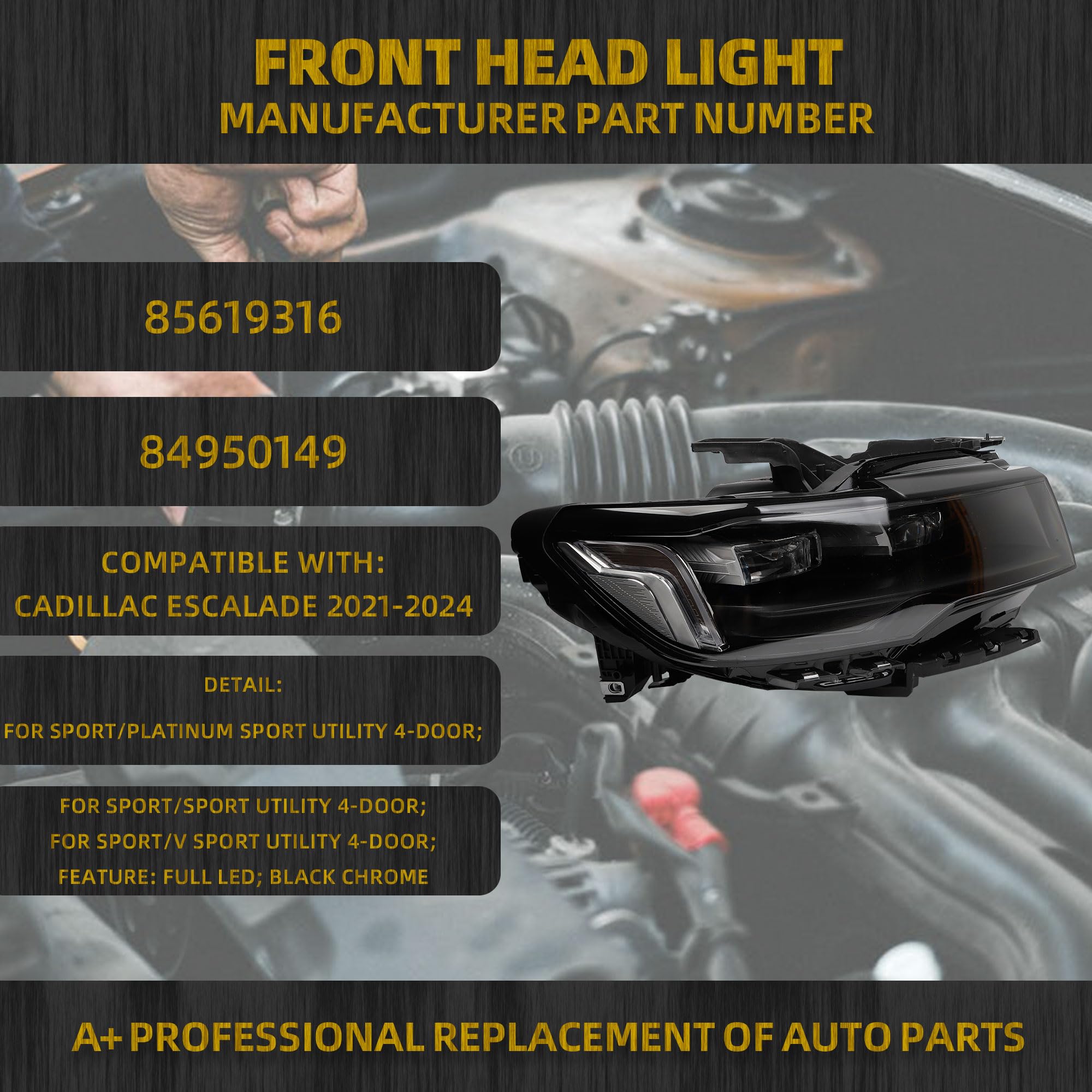 【Comptiable With】Full LED Headlamp Assembly Sports Version Compatible with 2021 2022 2023 2024 Cadillac Escalade.
