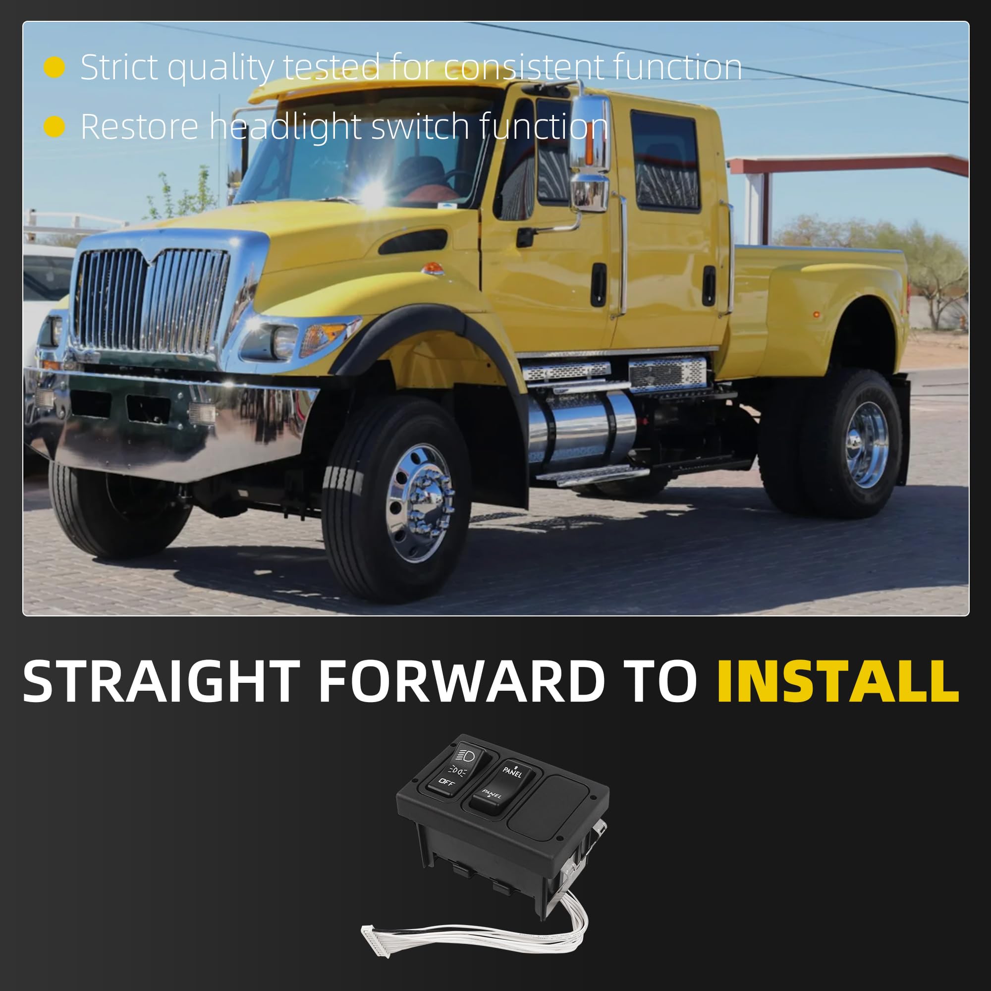 Fitment:The Heavy Duty Headlight Switch Compatible with 2001-2004 International 3200/7300/7400/7500/7600/8500/8600/RXT & 2002-2004 International 4200/4300/4400.