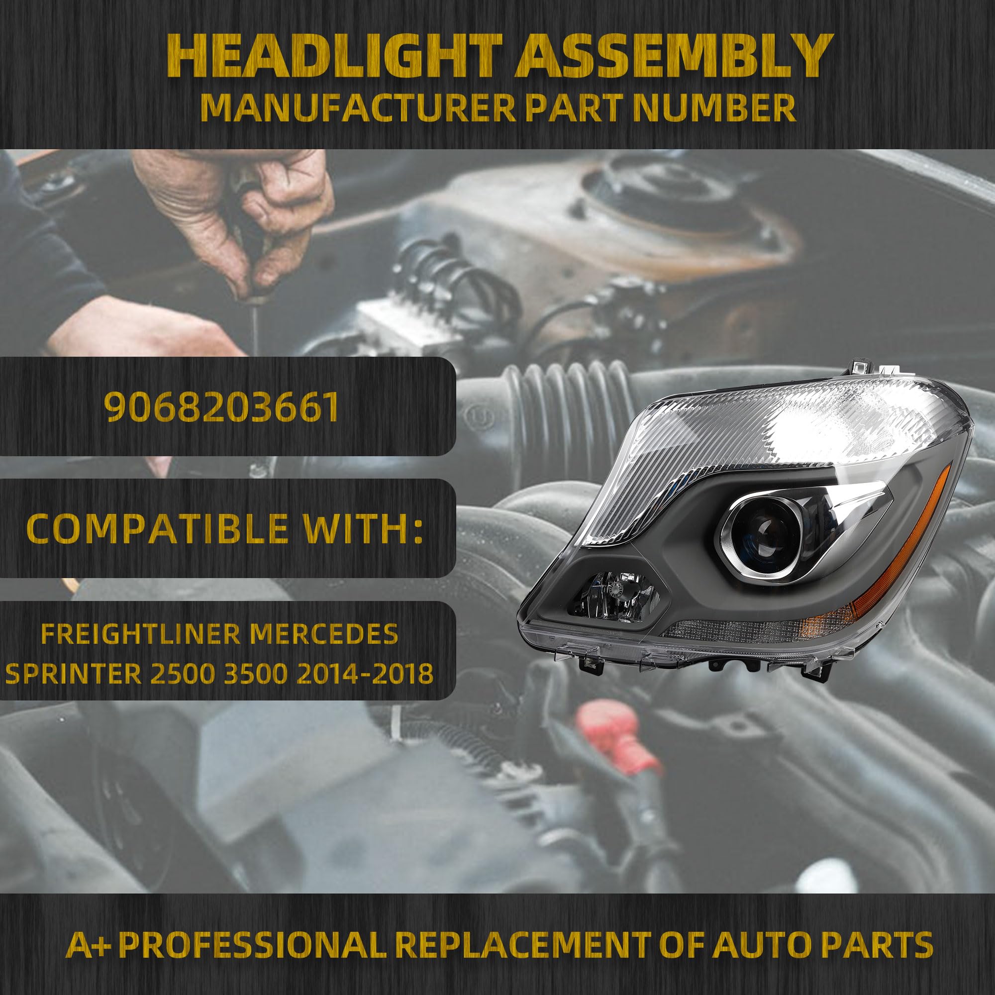 Compatible With: Freightliner Mercedes Sprinter 2500 3500 2014-2018. Only compatible with factory HID (Xenon) Model,w/o Bulbs. Not Compatible with Factory Halogen Model.