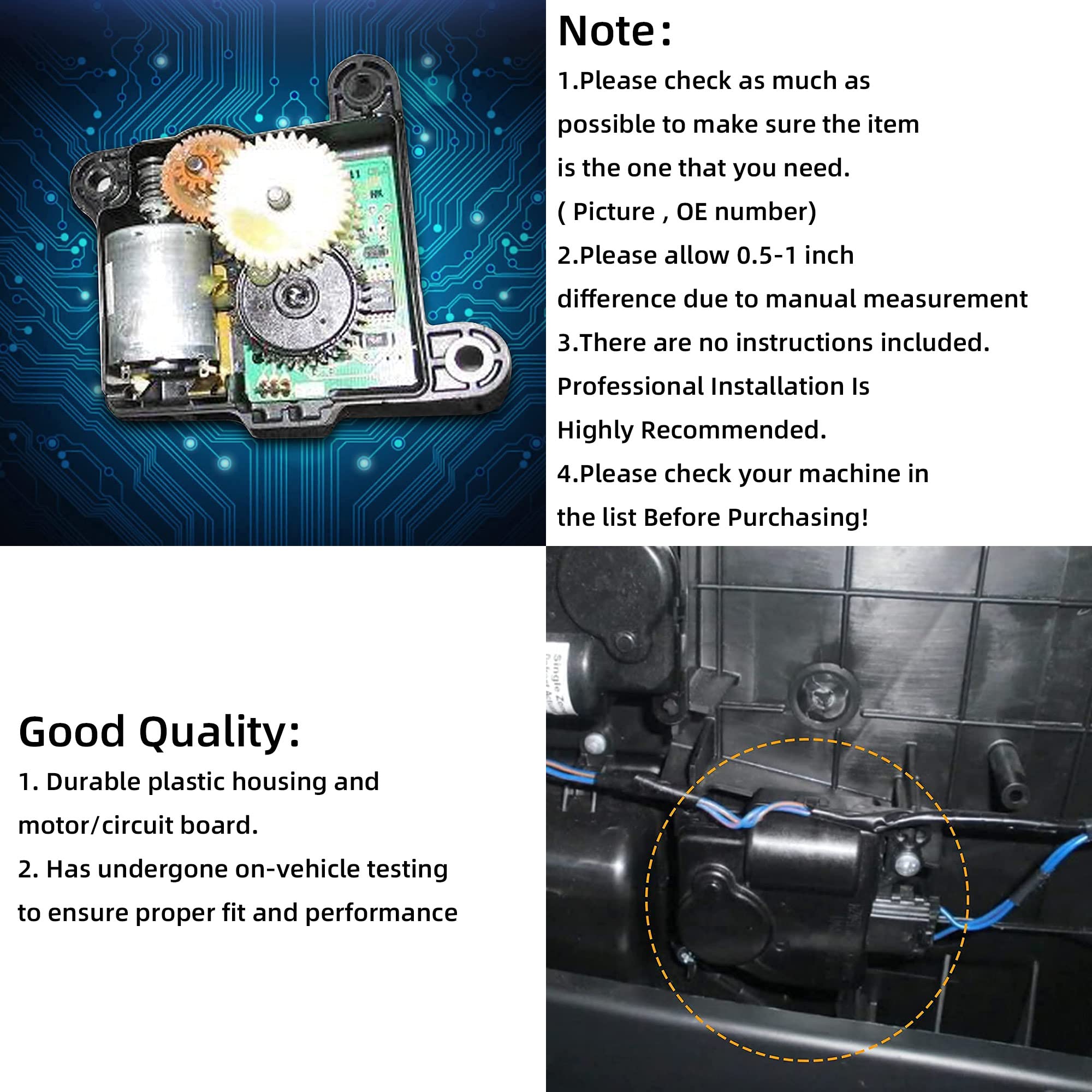 【Warranty】1 Year Warranty, No Reason Return in 30 Days. Any questions with our Heater Blend Door Actuator, please contact us via Amazon Message directly, we will reply to you within 12 hours.