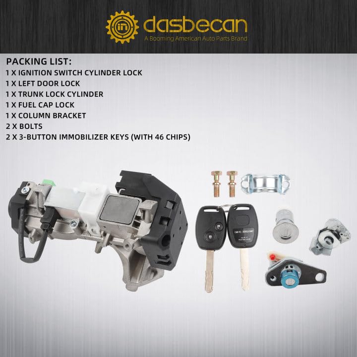 【Package】1*Ignition Switch Lock Cylinder ; 1 X Ignition Switch Cylinder Lock;1 X Left Door Lock; 1 X Fuel Cap Lock ; 2* bolts and 1* bracket ; 2 X 2-button Immobilizer Keys (with 46 chips)