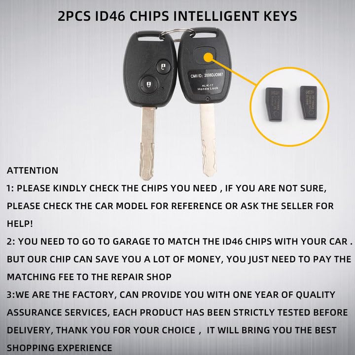 【Chip ID46 keys】Ignition Switch Lock Cylinder is universal for all Honda models (03-11), while different kinds of chips fit different years. We only offer ignition switch lock cylinder with chip ID 8E keys .Please kindly check the model before ordering.