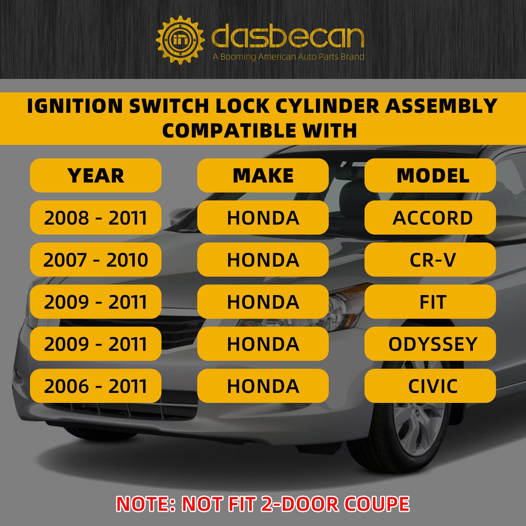 【Chip ID48 keys】The Dook Lock Cylinder is universal for all Honda models ( 03-11 ), while different kinds of chips fit different years. We only offer ignition switch assembly with chip ID 48 keys