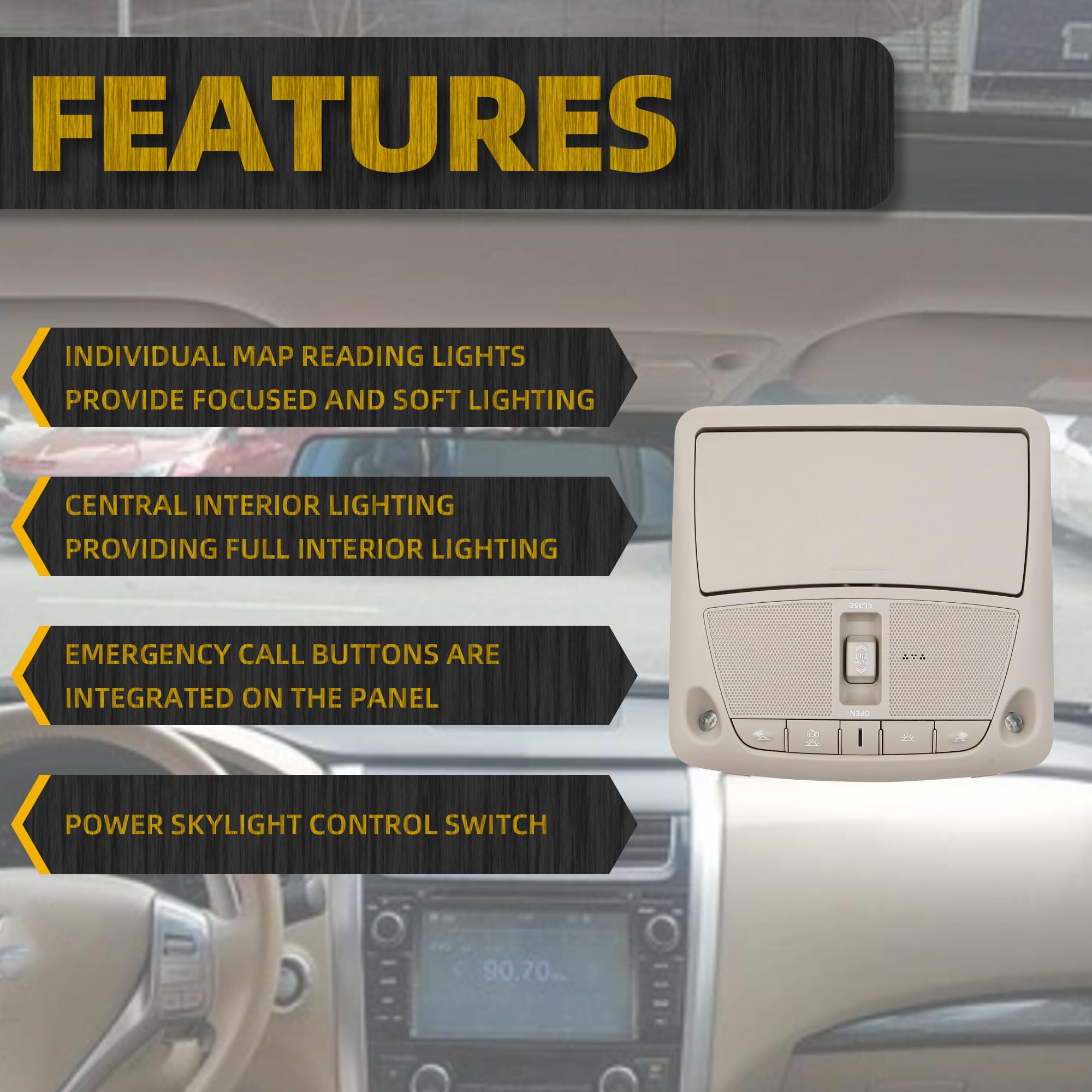 【Fitment】The overhead light compatible with 2013-2018 Nissan Altima Teana 2013-2015 Nissan Sentra.