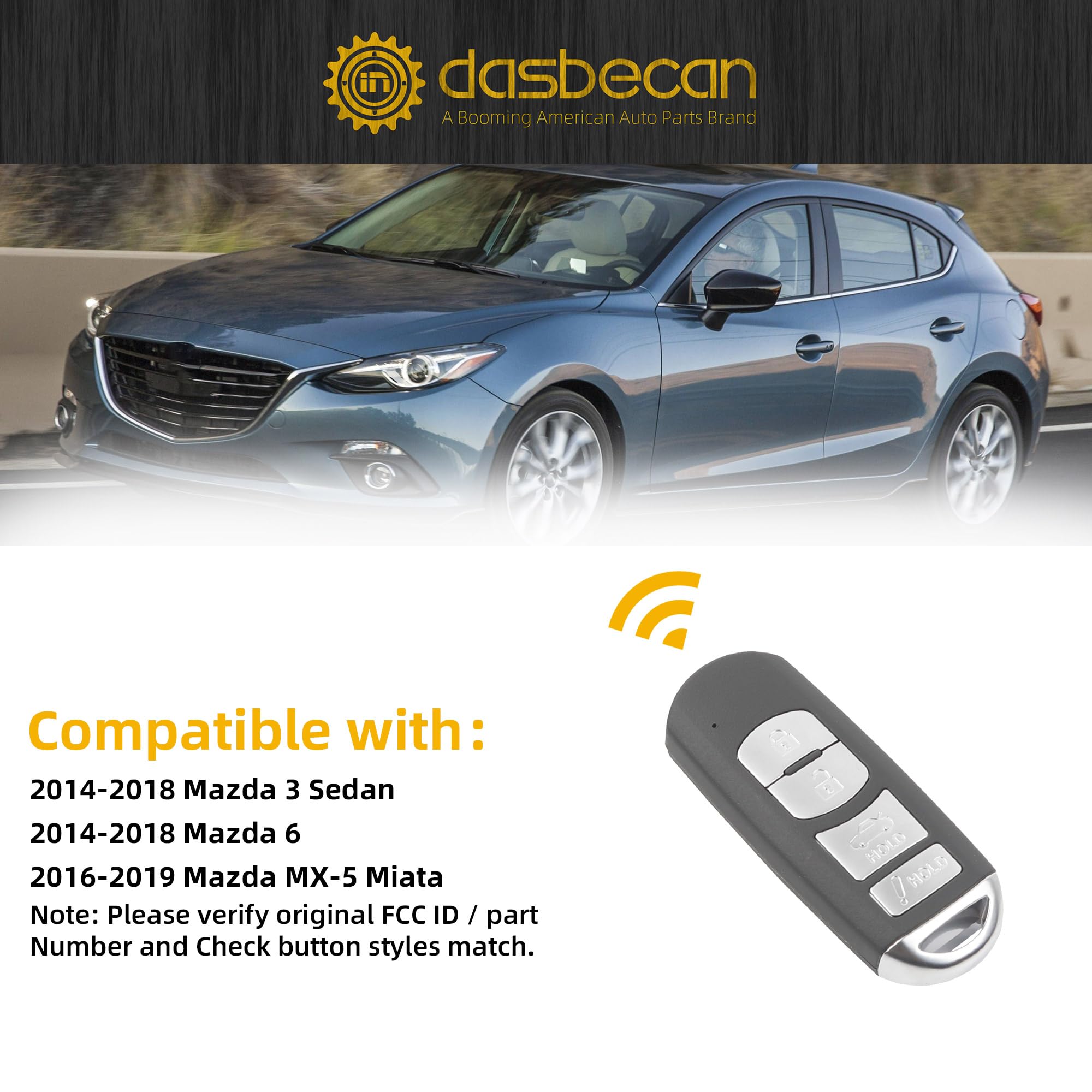 Compatible with : 2014-2018 Mazda 3 Sedan; 2014-2018 Mazda 6; 2016-2019 Mazda MX-5 Miata