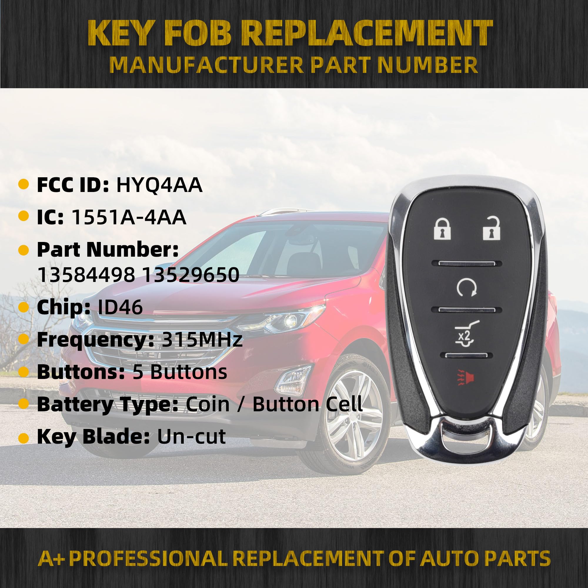Fitment: This key fob replacement fits for Chevy Equinox 2018 2019 2020 2021, supports Push-Button vehicles only.