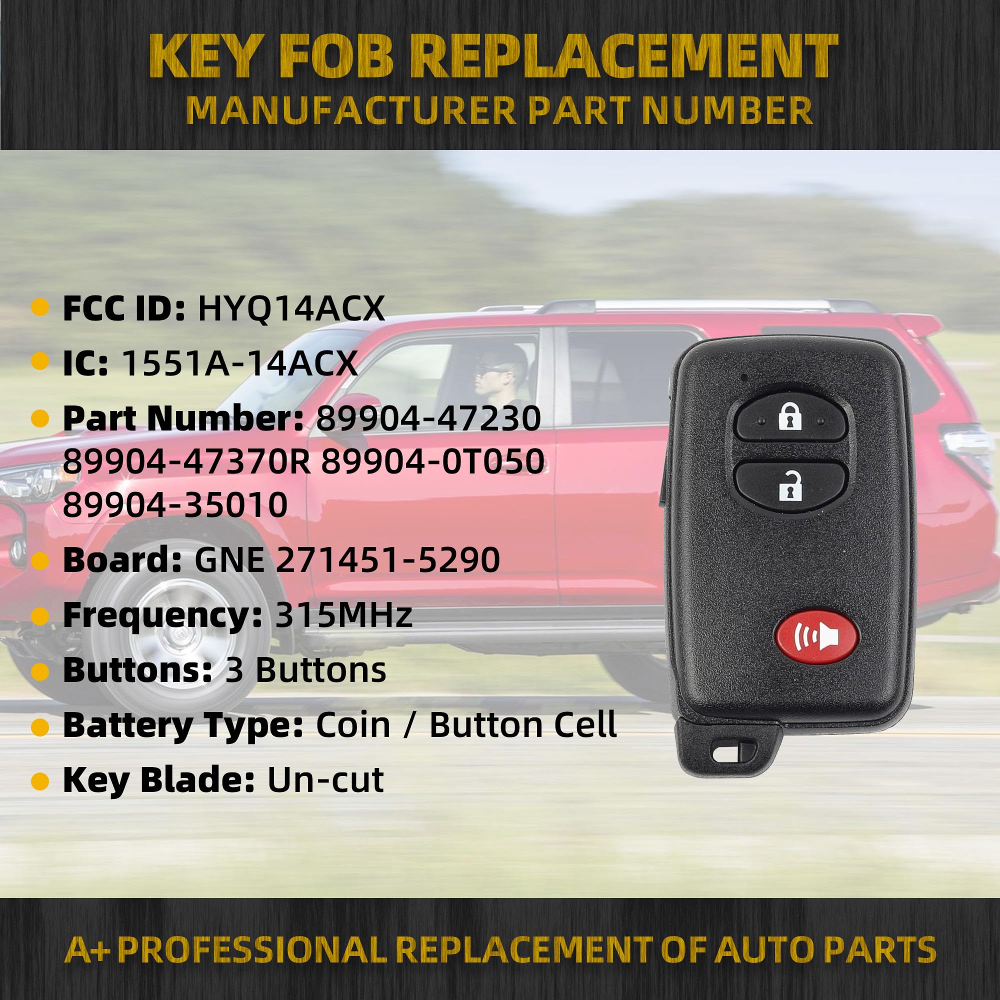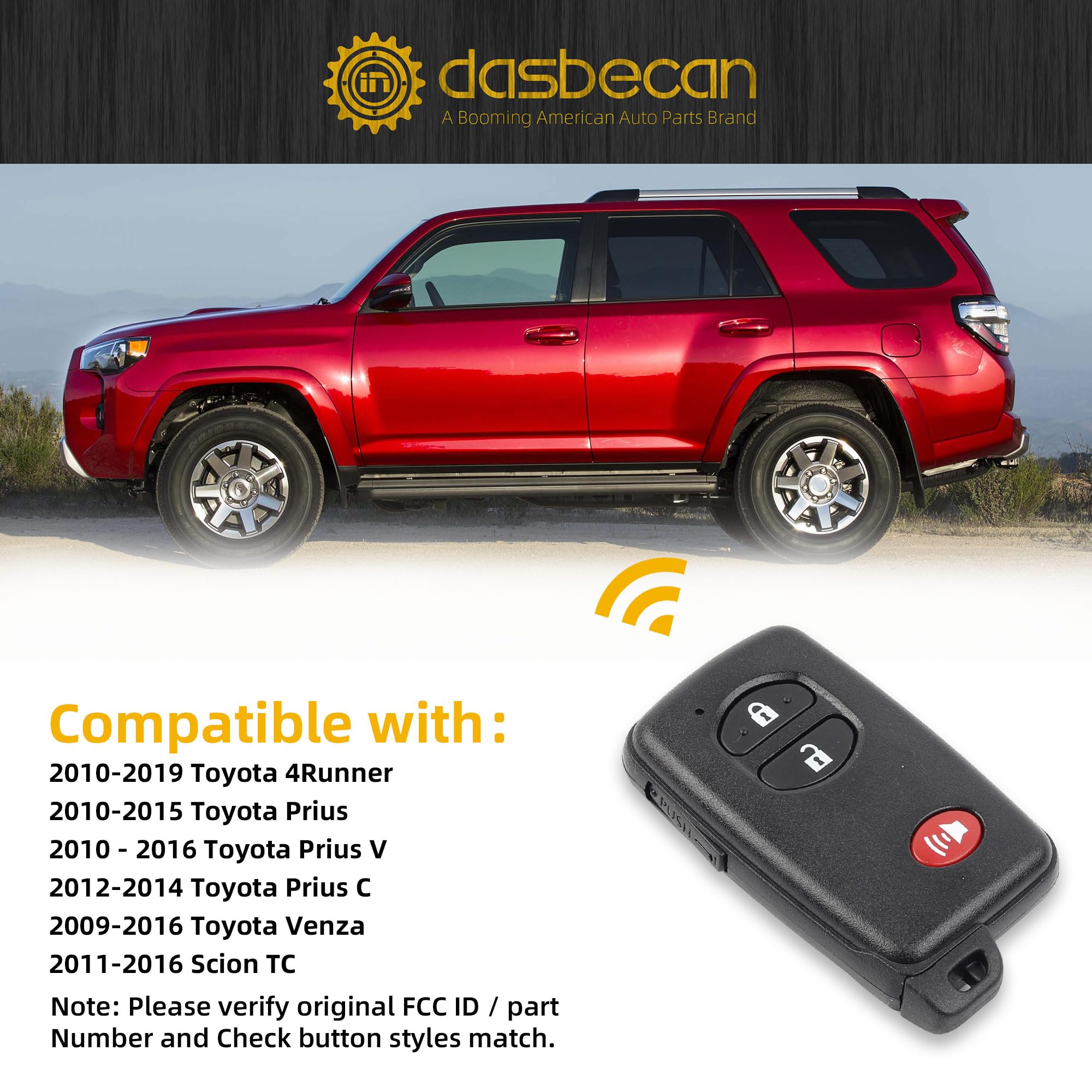 Fitment: This key fob replacement fits for Toyota 4Runner 2010-2019, Prius 2010-2015, Prius C 2012-2014, Venza 2009-2016, Prius V 2010-2016, Scion TC 2011-2016.