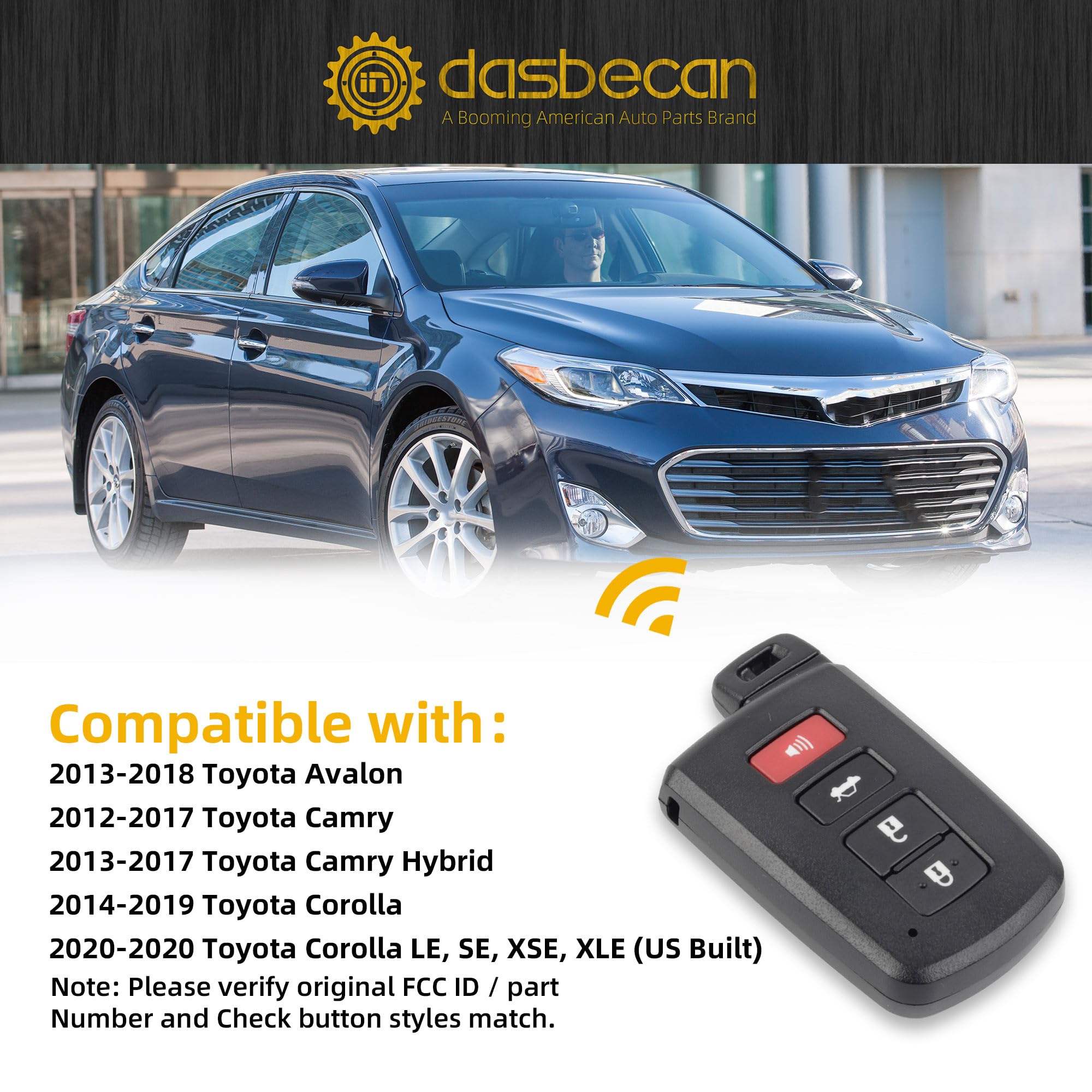 Fitment: This key fob replacement fits for Toyota Avalon 2013 -2018, Toyota Camry 2012-2017, Toyota Camry Hybrid 2013-2017, Toyota Corolla 2014-2019, Toyota Corolla LE, SE, XSE, XLE 2020 (US Built)
